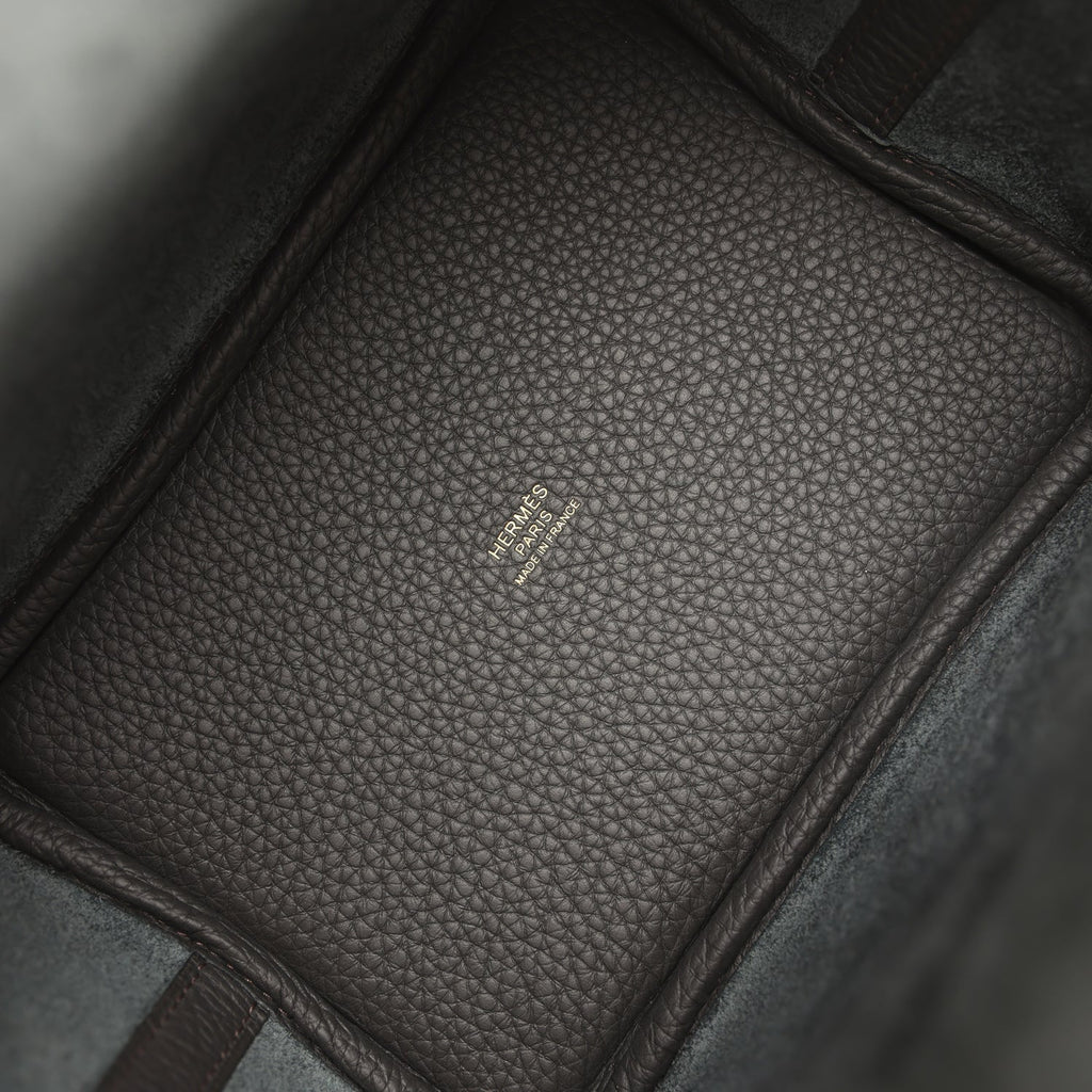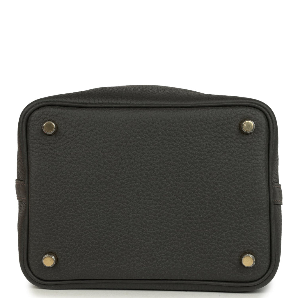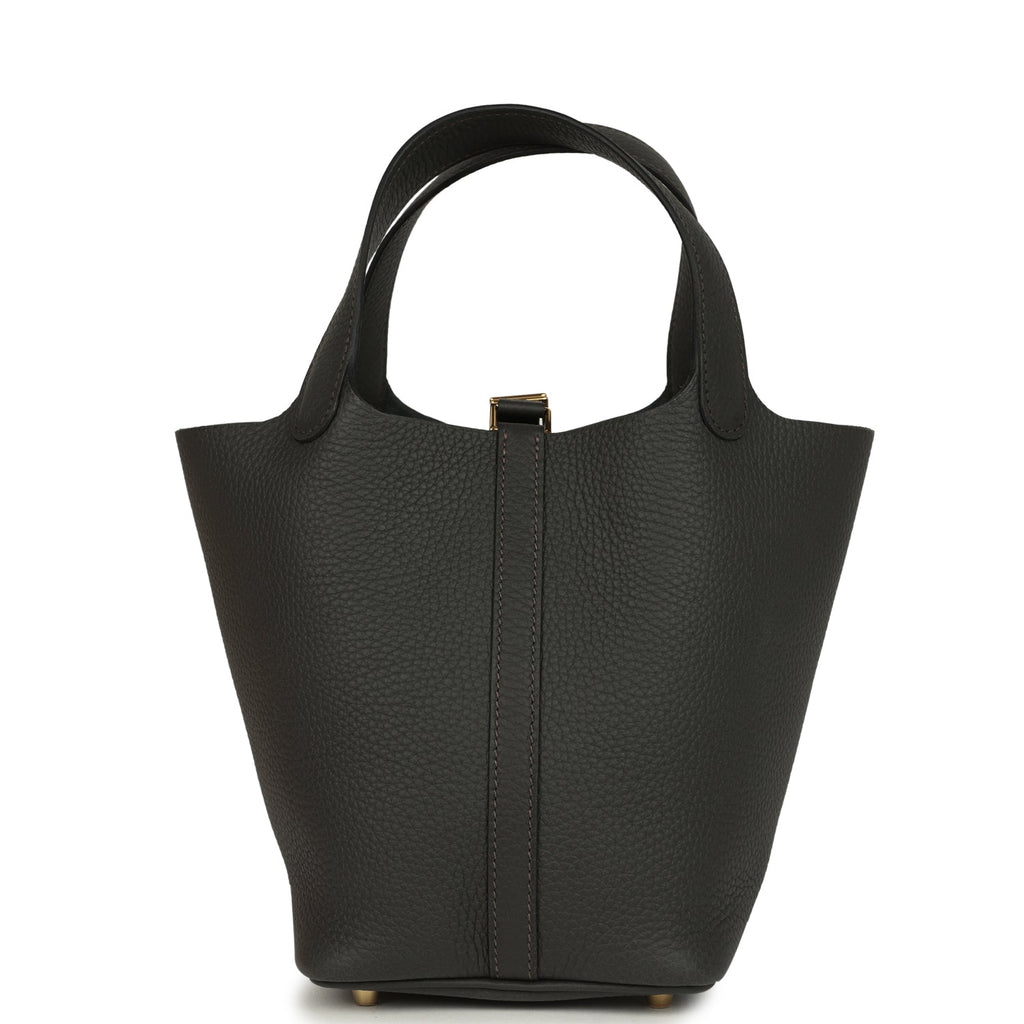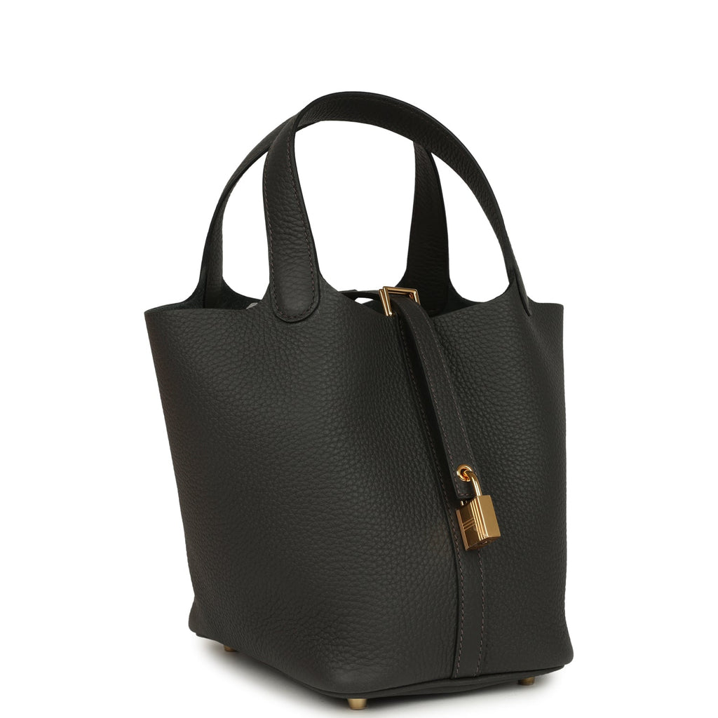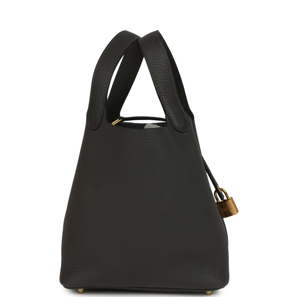 Hermes Picotin Lock 18 Dark Bronze Clemence Gold Hardware Shop for an authentic Hermes Picotin Lock 18 in Dark Bronze clemence leather with gold hardware in new and never worn condition at Madison Avenue Couture.