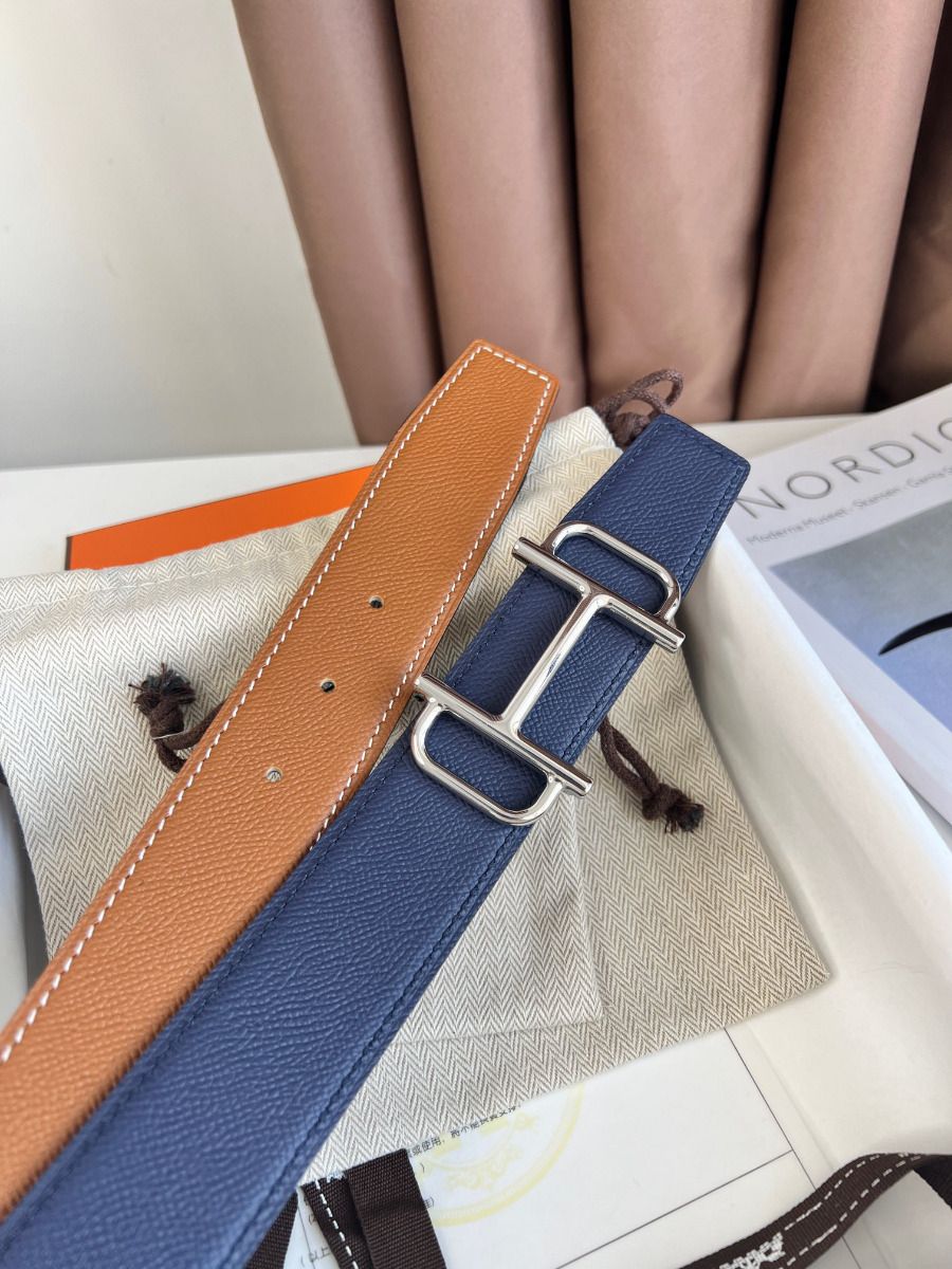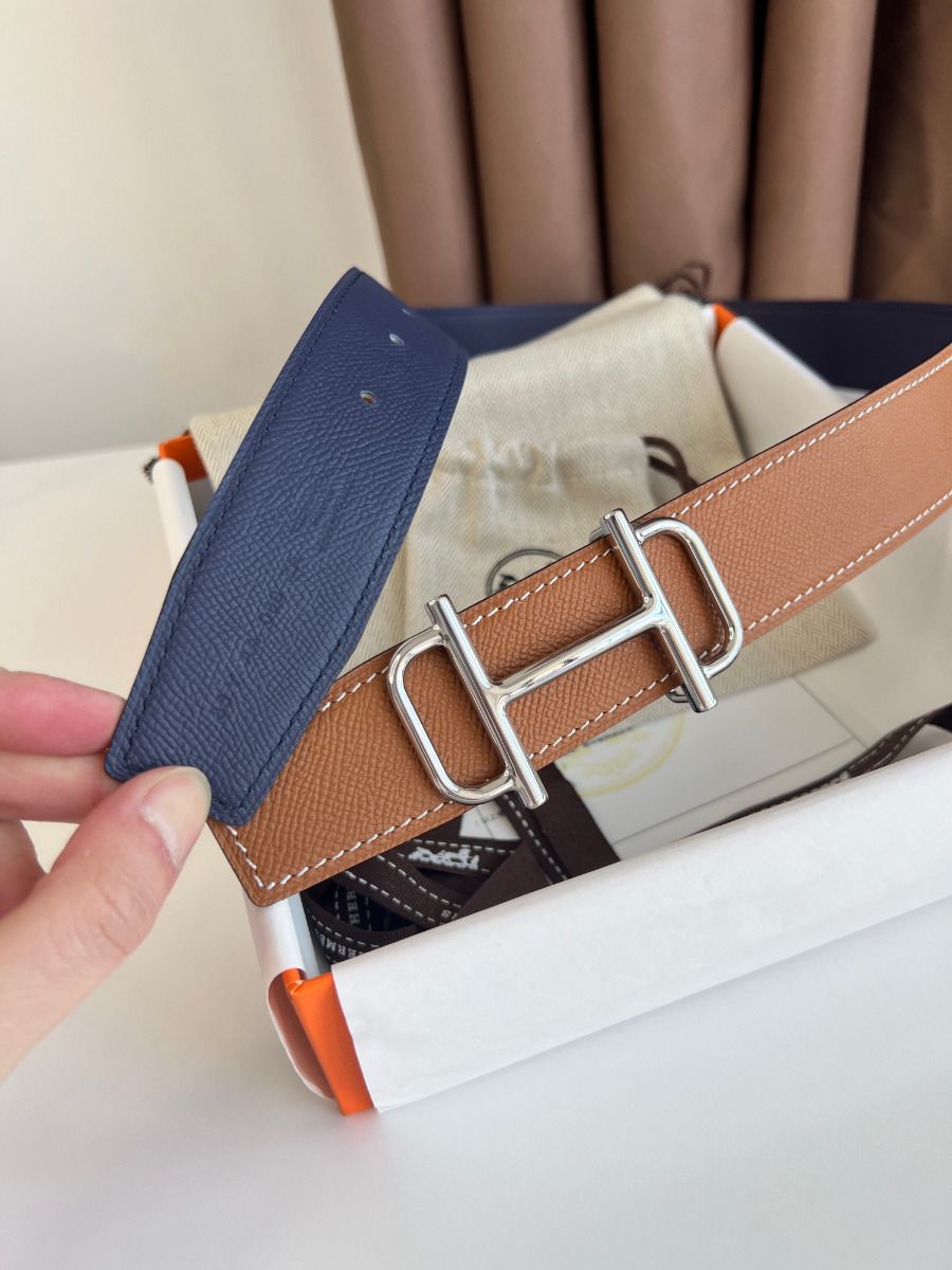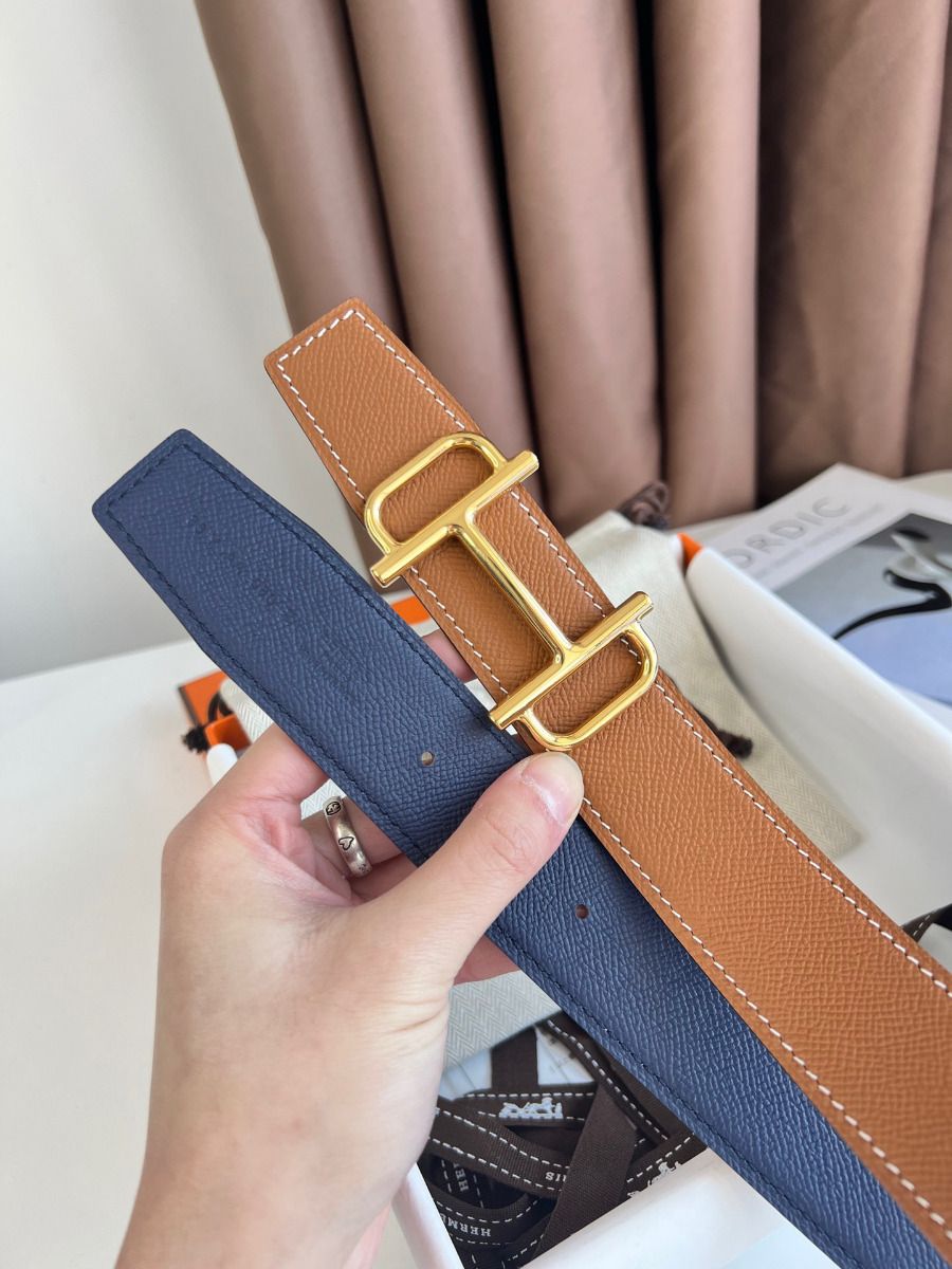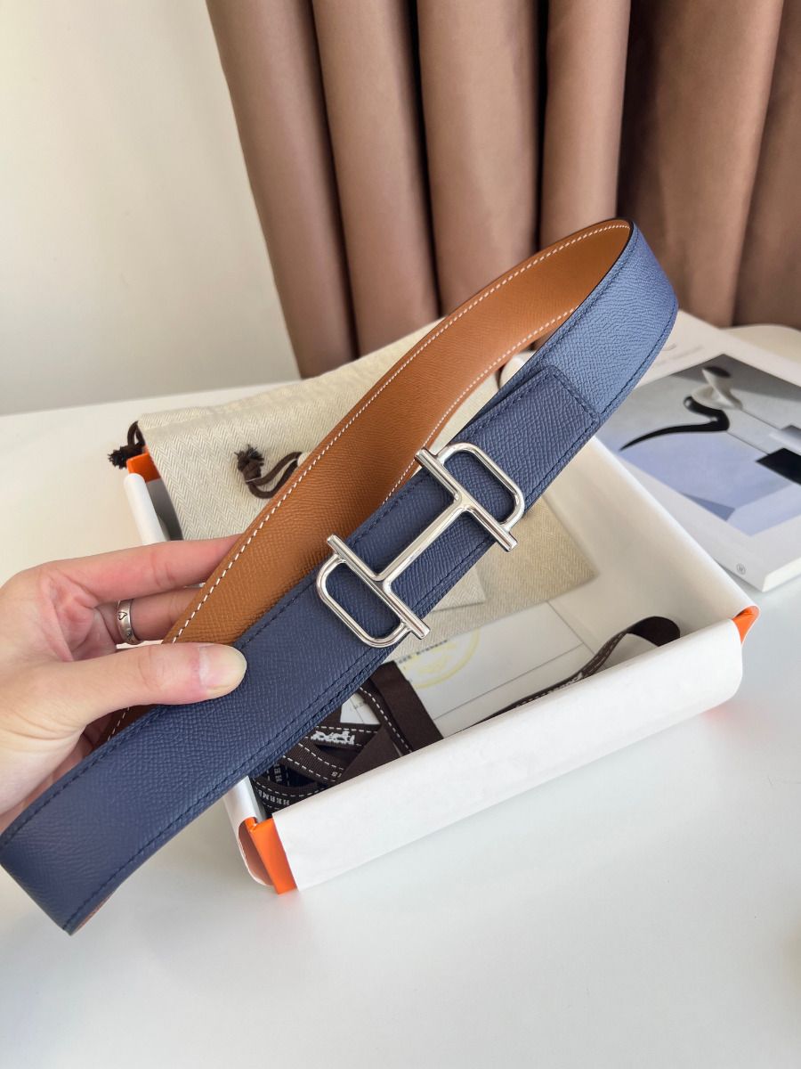 Hermes Royal Reversible Belt 38MM in Blue and Gold Epsom Calfskin