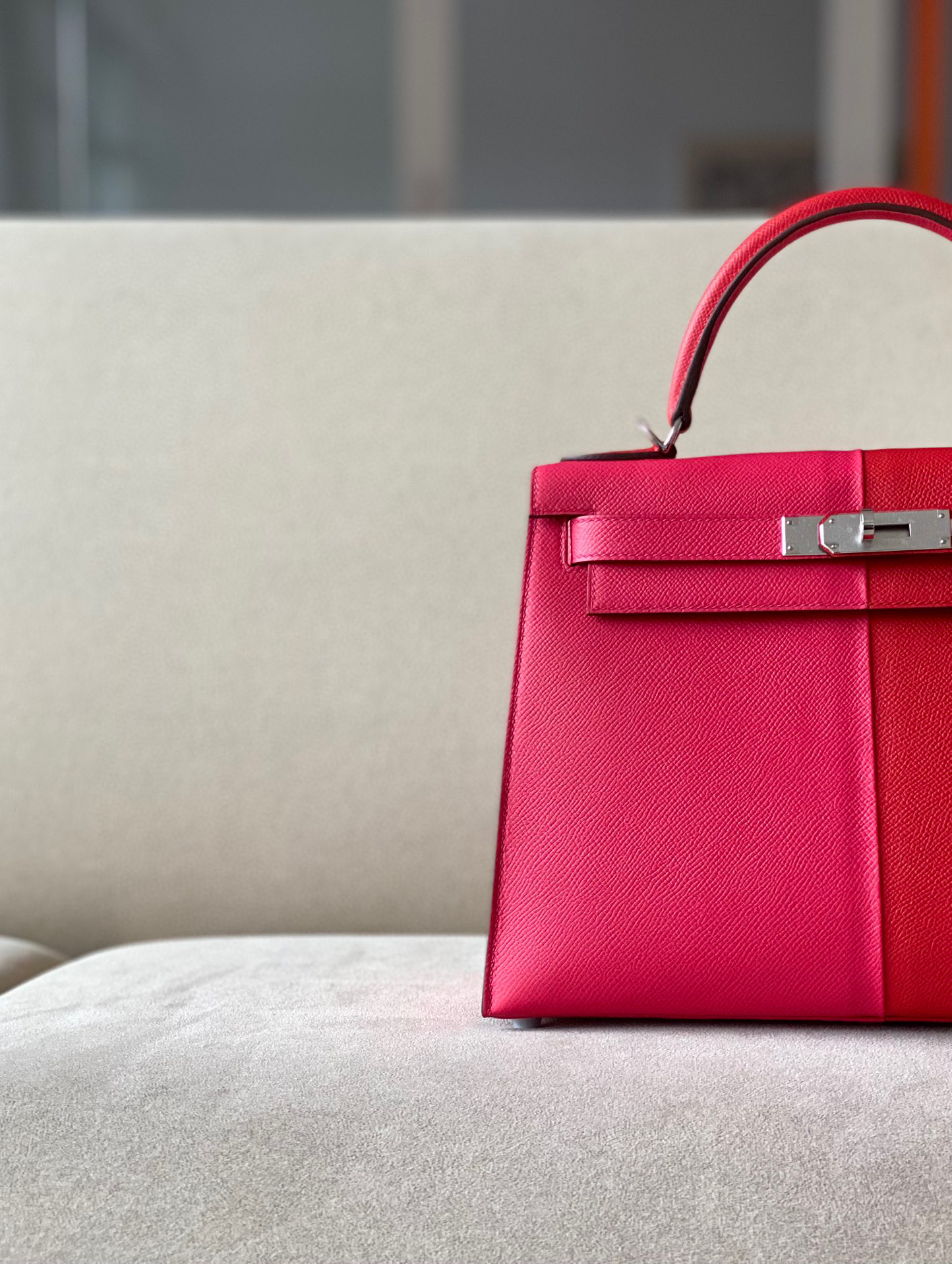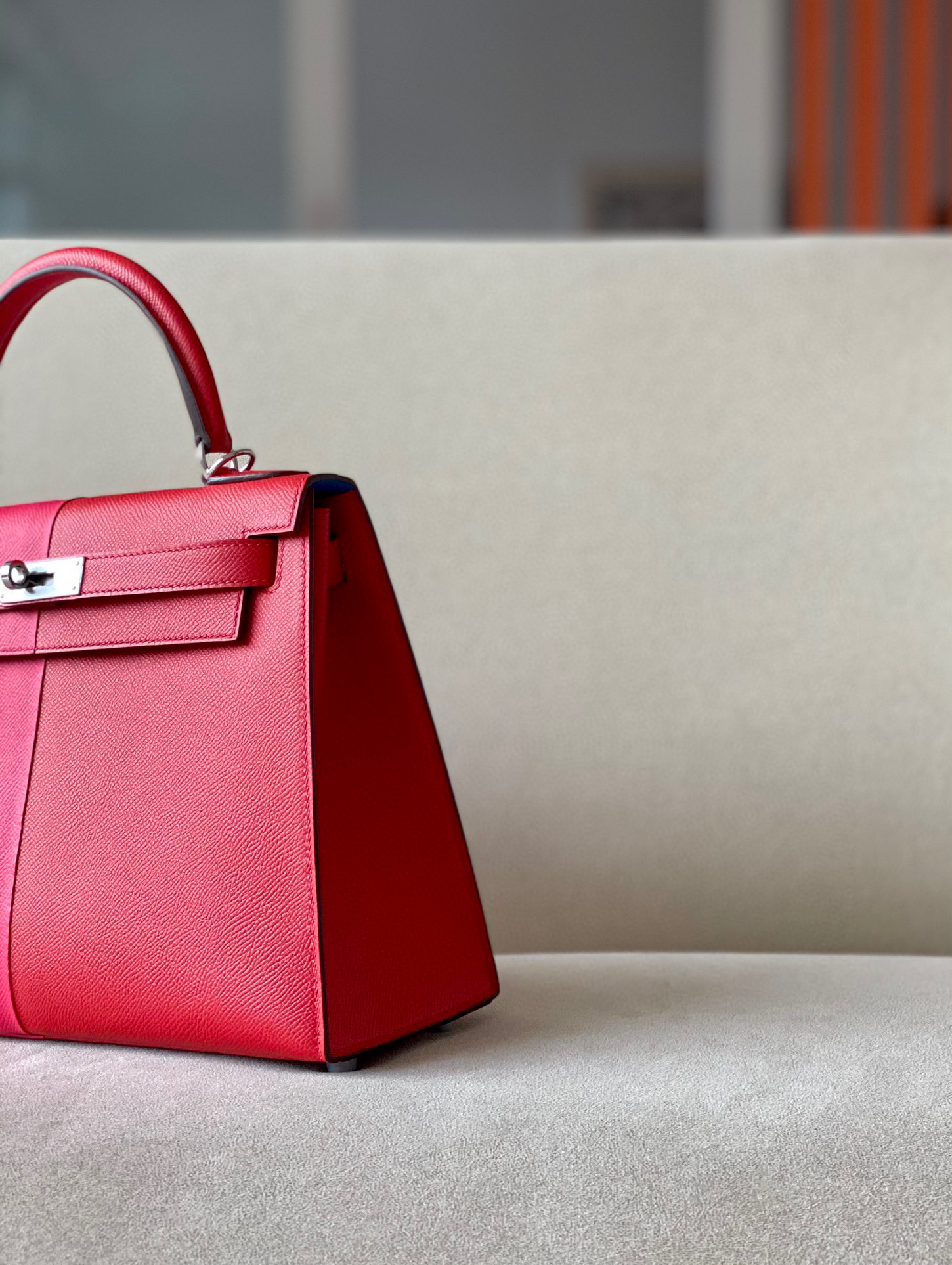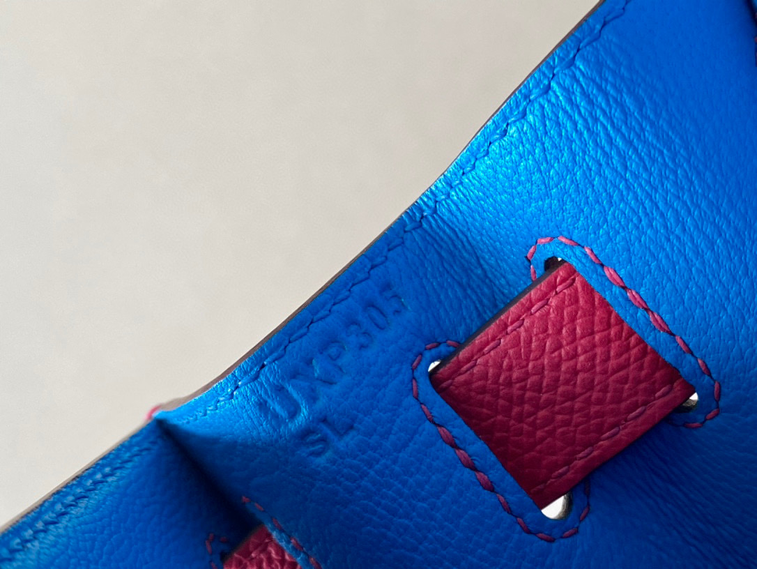 Kelly HSS 28 Epsom Rouge de Coeur(S3) and Rose Extreme(I6) and Blue Zanzibar(B3) Palladium Hardware