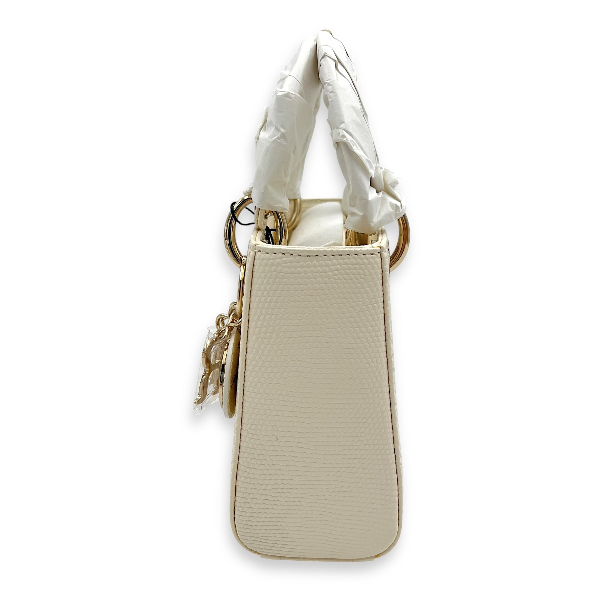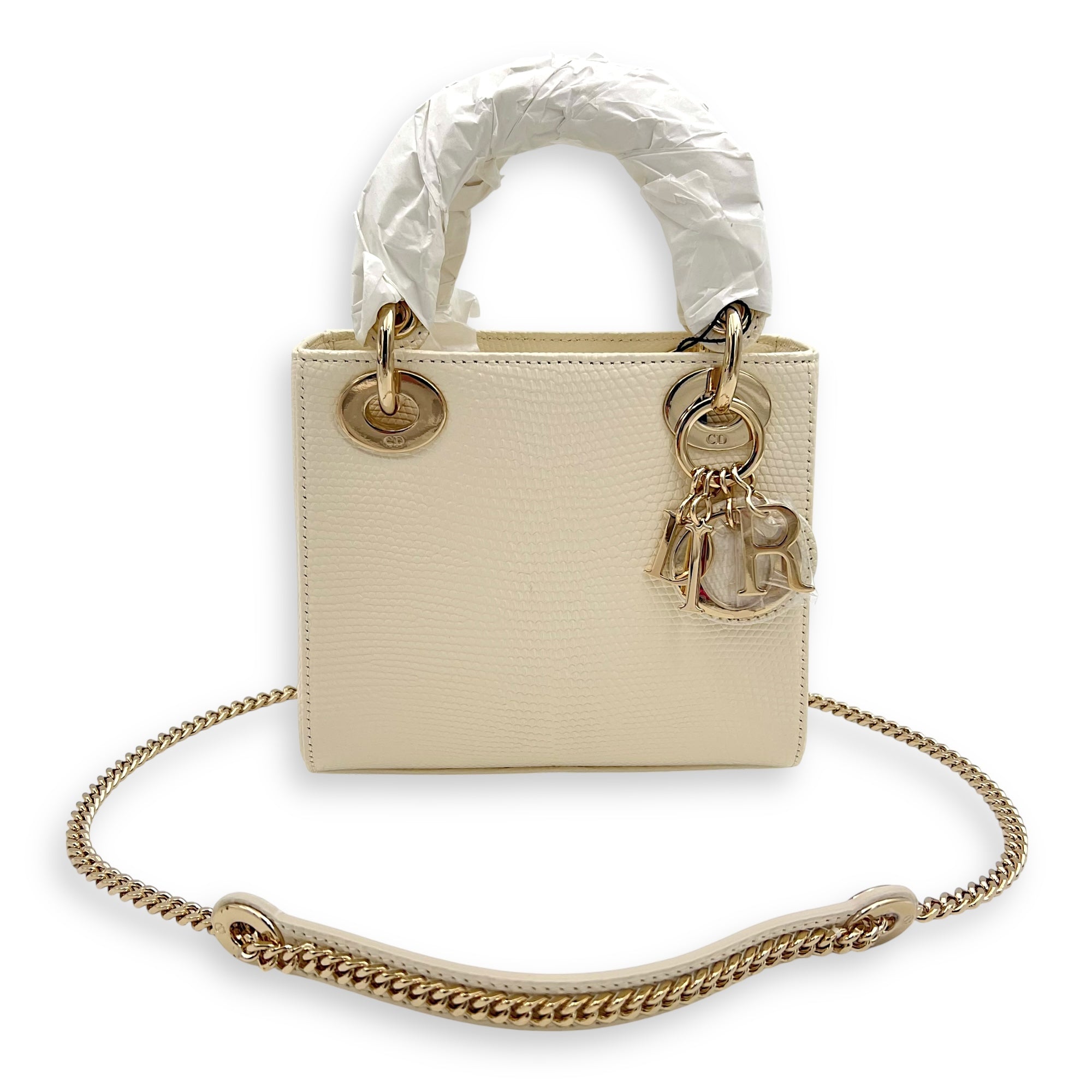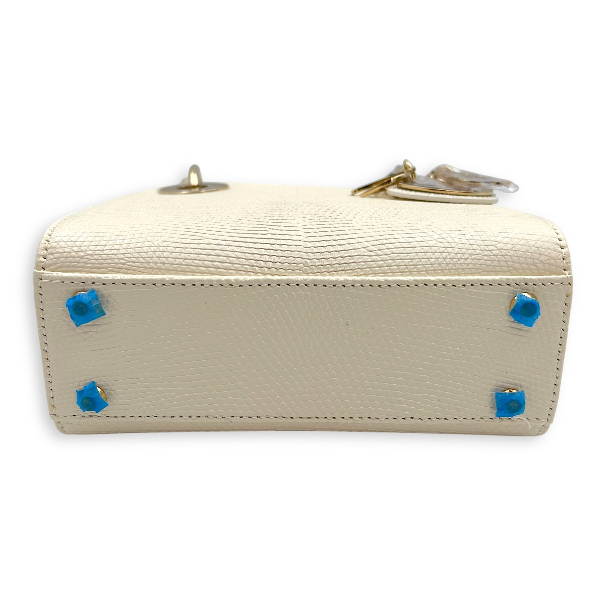 Lady Dior Top Handle Bag Mini White in Lizard, Gold hardware