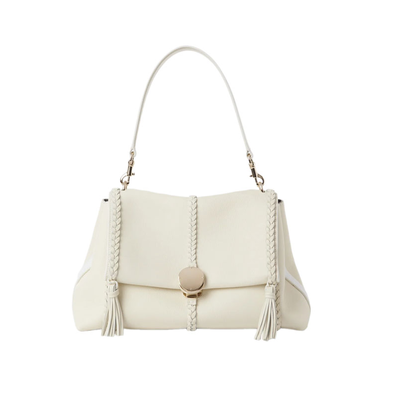 Two rolled-leather top handles and a removable, adjustable leather shoulder strap enhance its versatility.