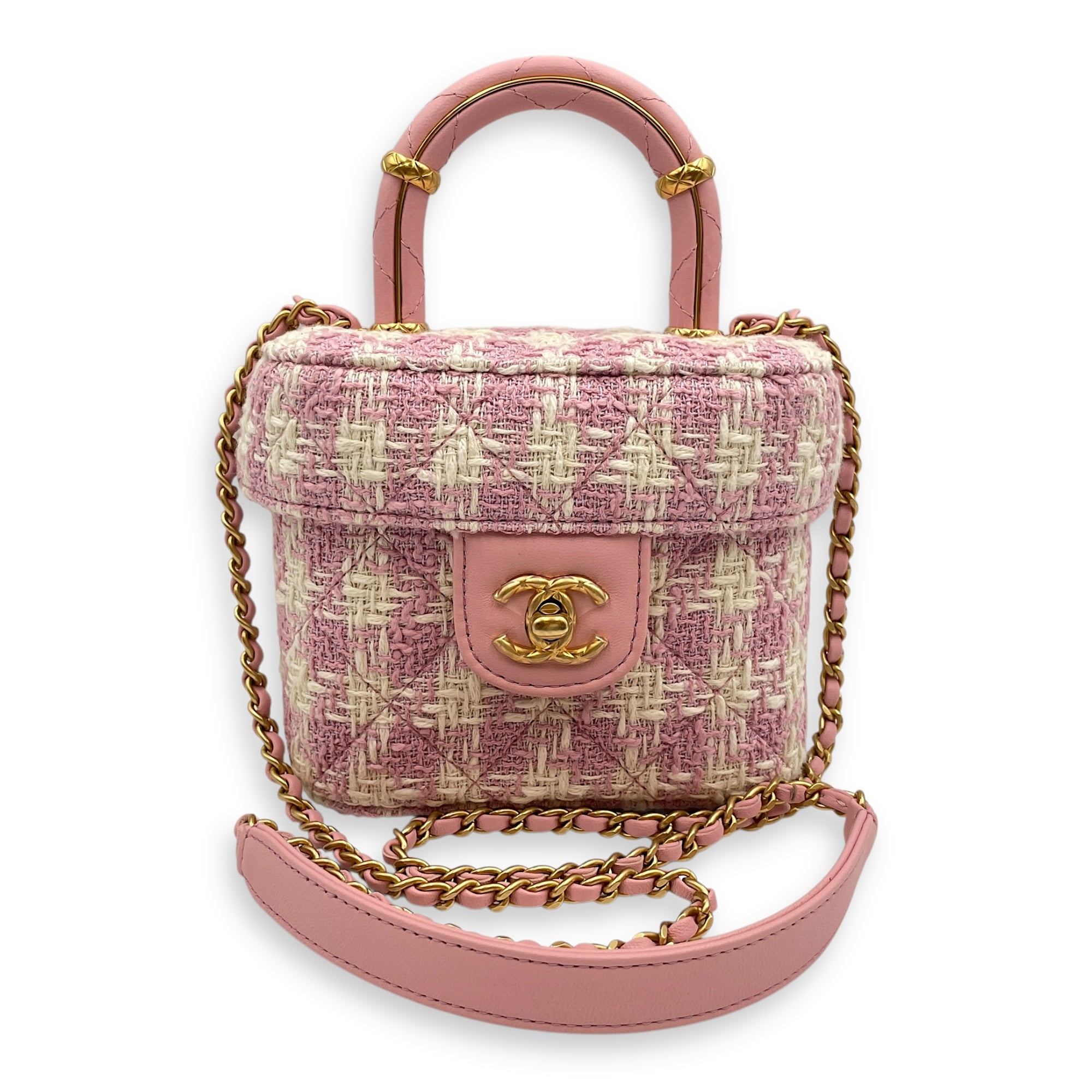 Be the first to review “Matelasse Small Pink Vanity Case in Tweed, Gold hardware”