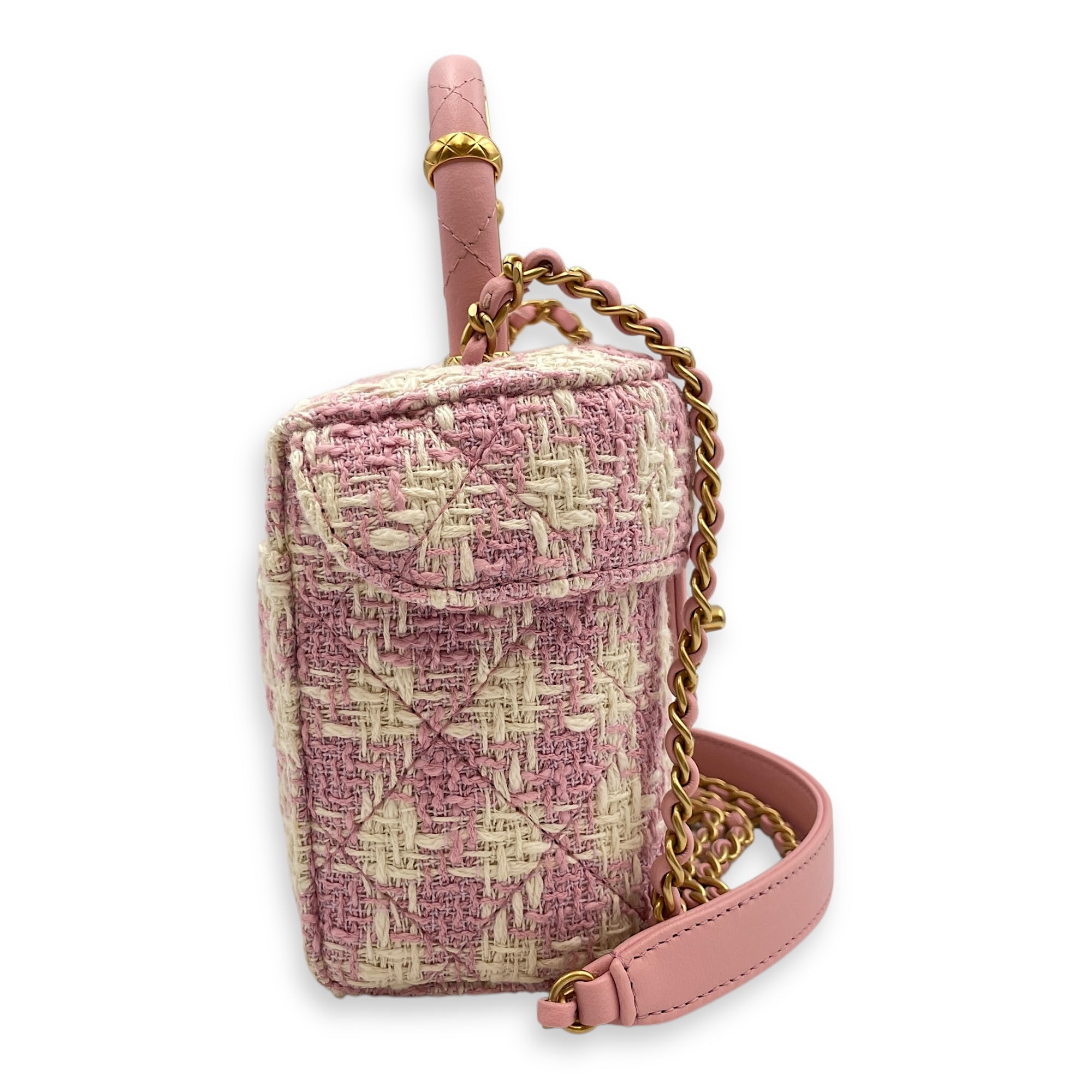 Matelasse Small Pink Vanity Case in Tweed, Gold hardware