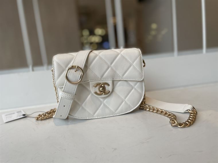 Messenger Bag Grained Calfskin & Gold-Tone Metal White – CB021