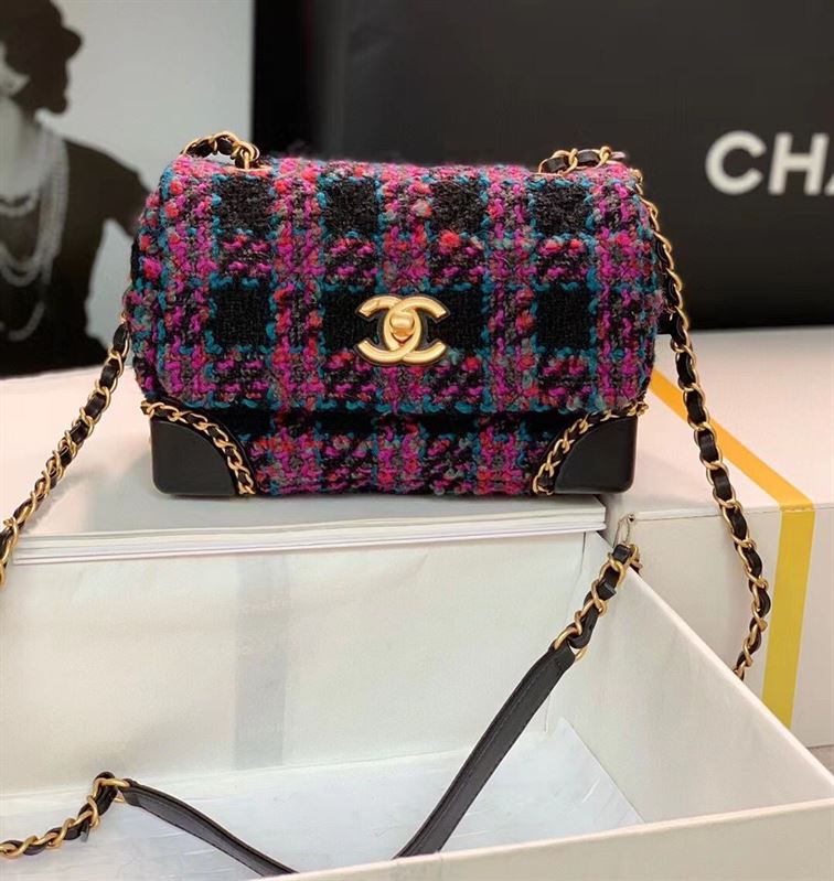 Mini Flap Bag Wool Tweed, Calfskin & Gold-Tone Metal – CB003