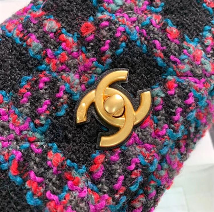 Mini Flap Bag Wool Tweed Calfskin Gold Tone Metal has Short shoulder strap with leather pad for comfort. Buy now!