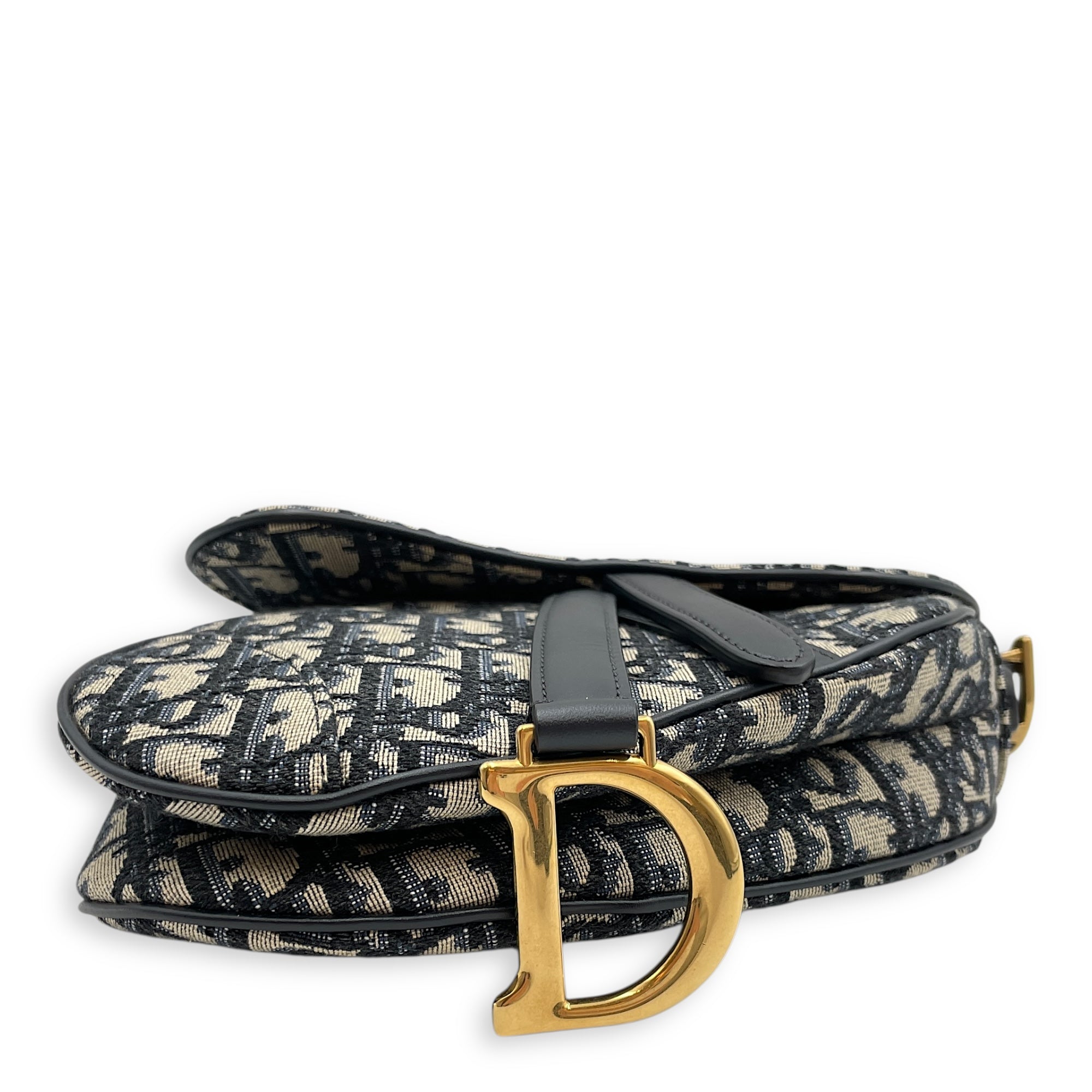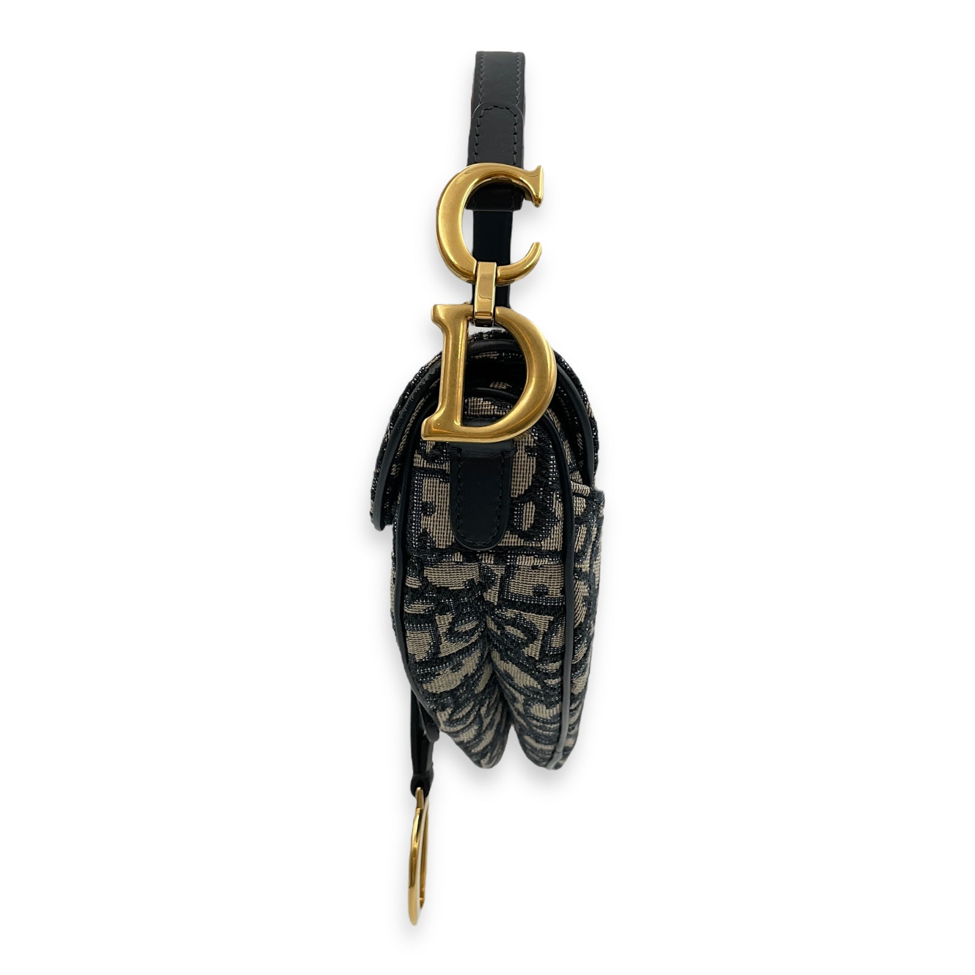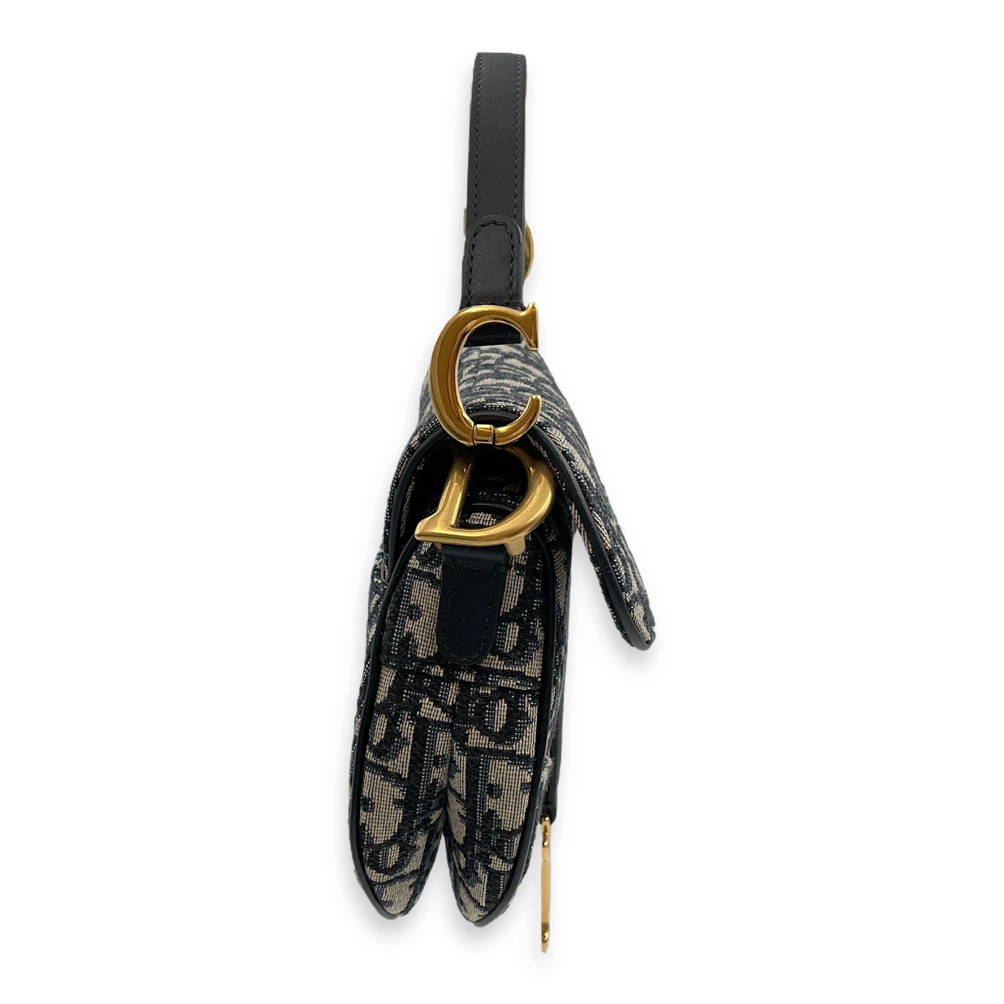 Oblique Saddle Mini Blue Top Handle Bag in Canvas, Gold hardware