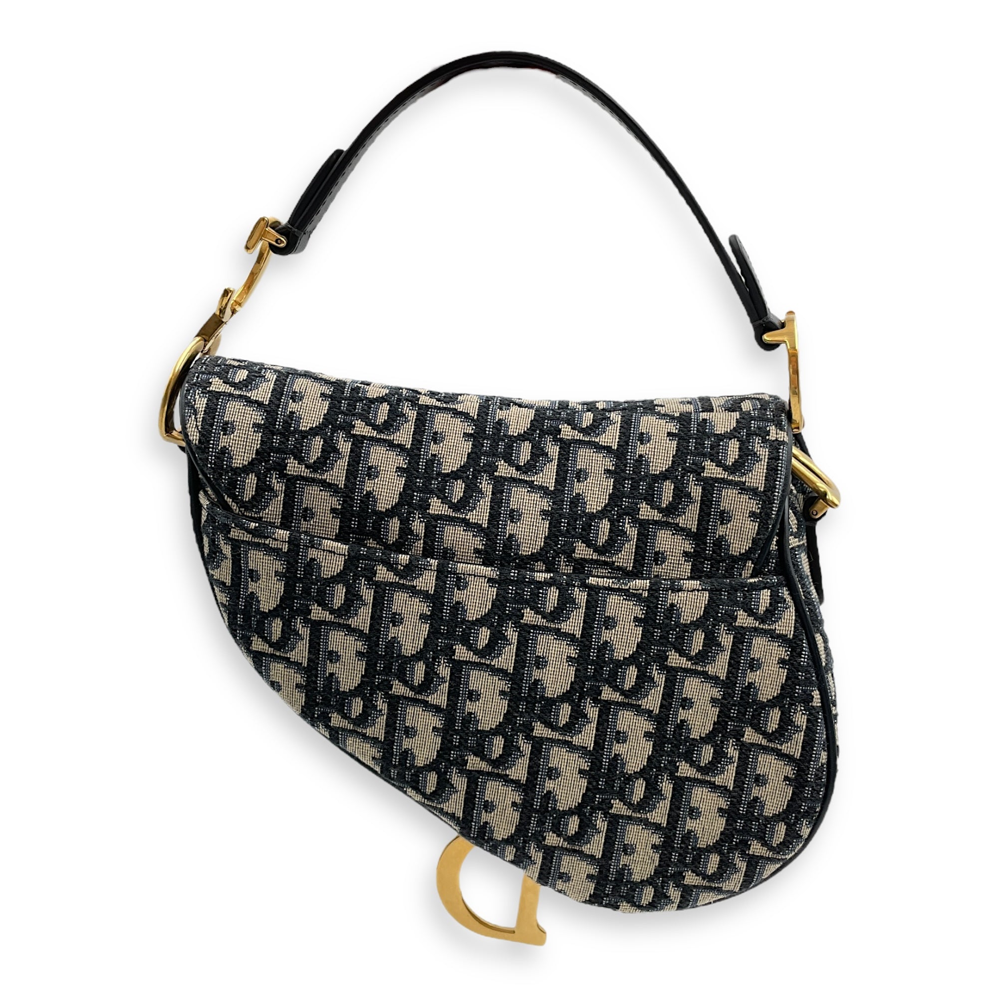Be the first to review “Oblique Saddle Mini Blue Top Handle Bag in Canvas, Gold hardware”