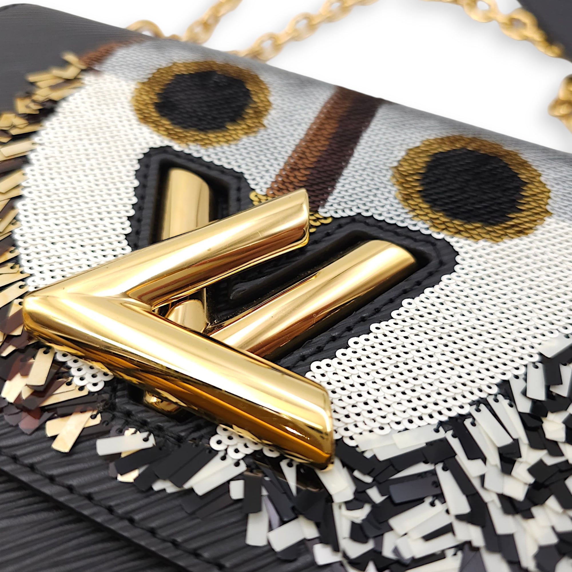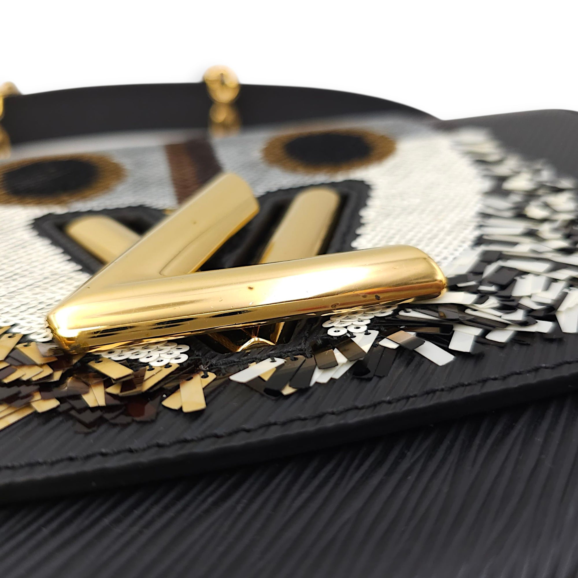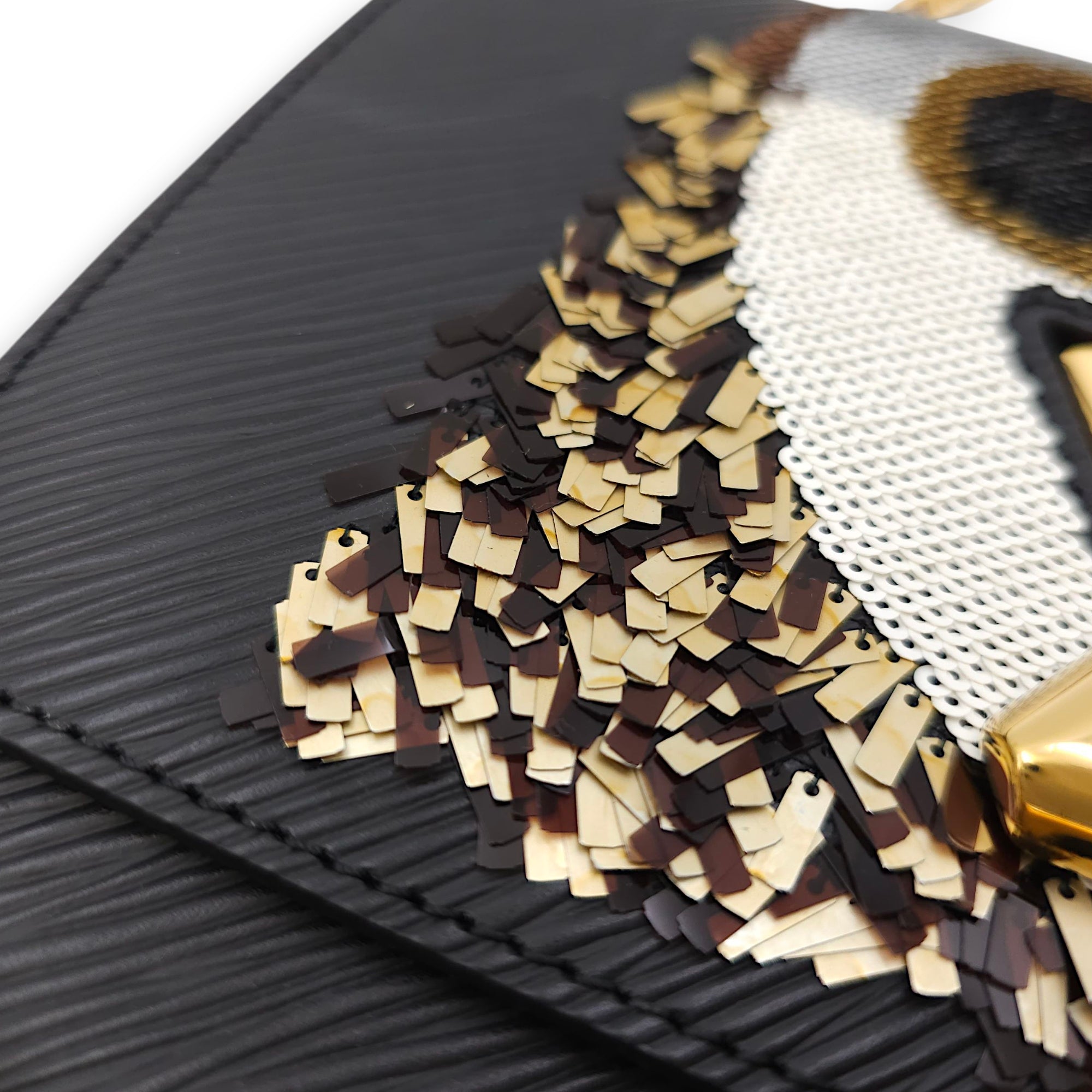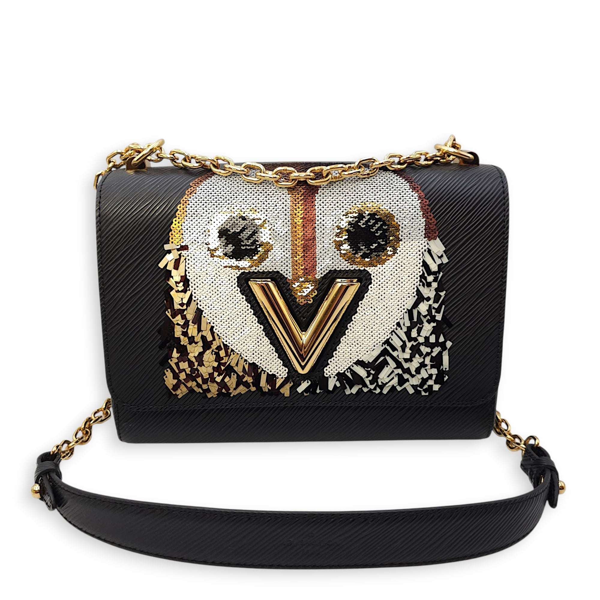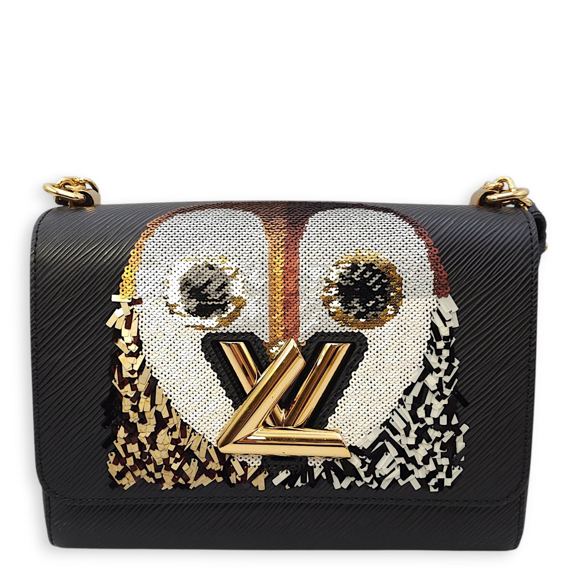 Owl Twist MM Black Crossbody Bag in Epi Leather, Gold hardware