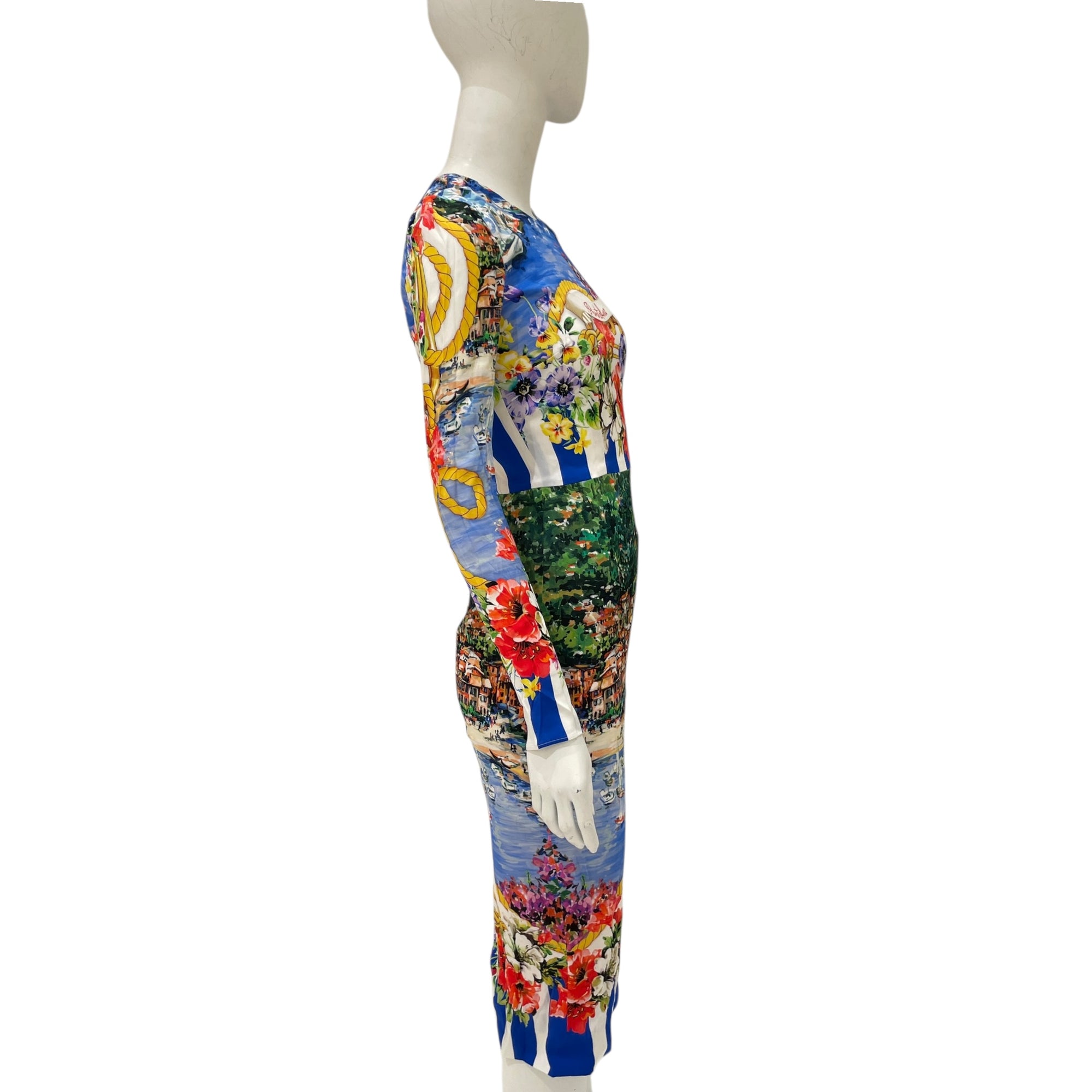 Portofino Printed Silk-Blend Midi Dress 38 Multi-colour Ready-To-Wear , Silver hardware