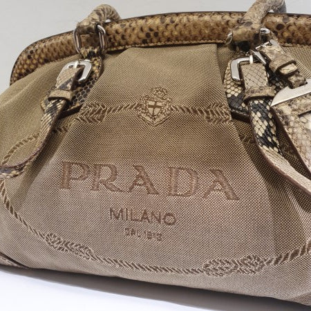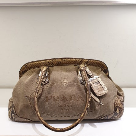 Prada Beige Jacquard Python Handbag