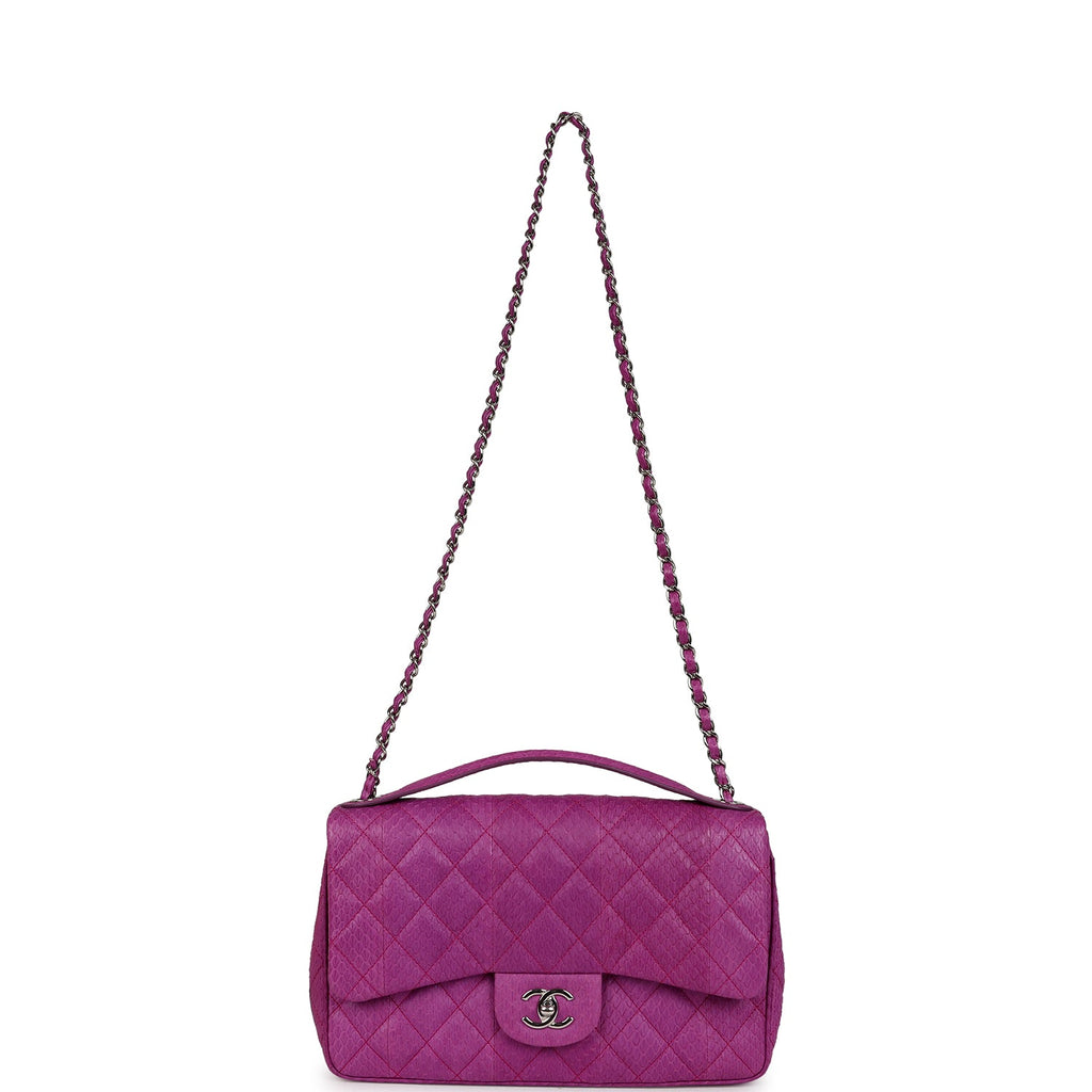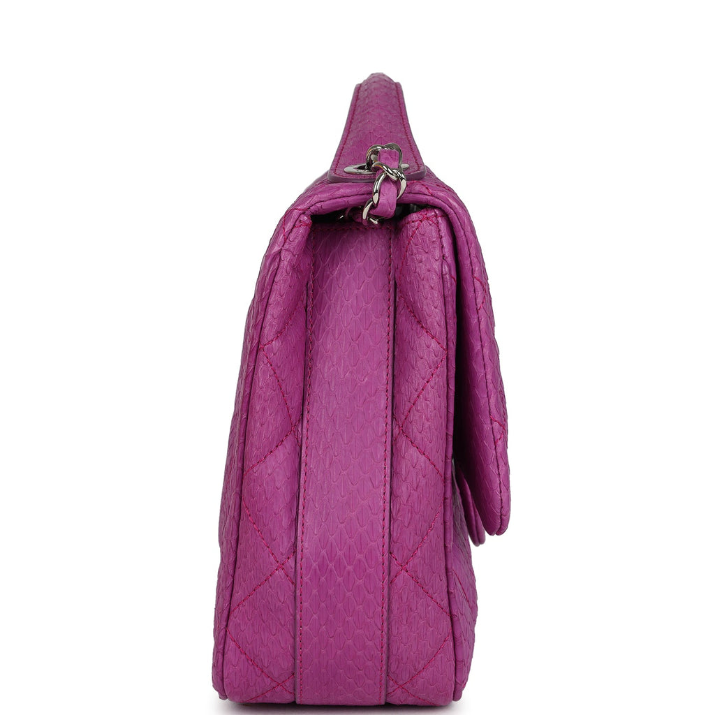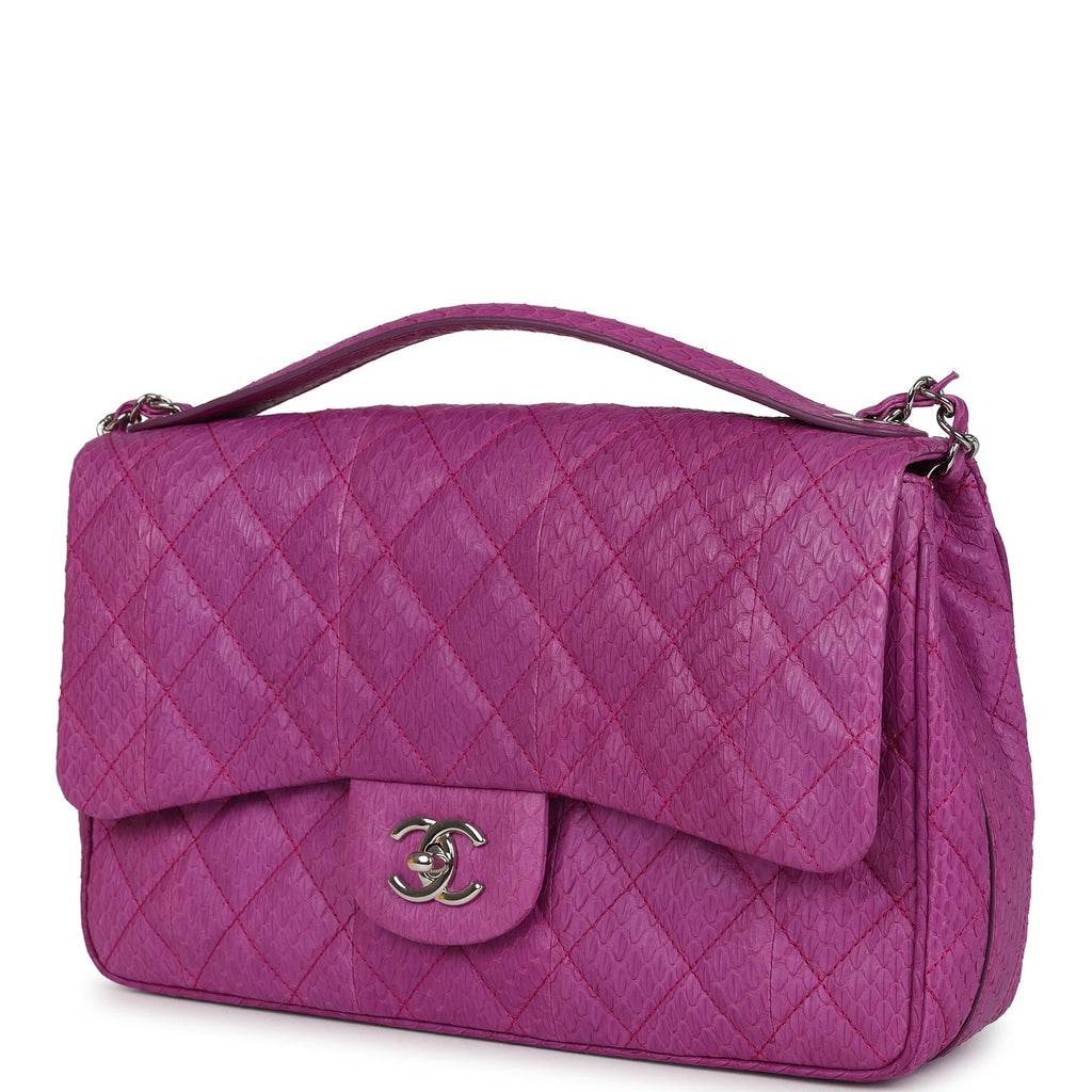 Pre-owned Chanel Medium Easy Carry Flap Bag Purple Python Silver Hardware Shop for an authentic pre-owned Chanel Medium Easy Carry Flap Bag in purple python with silver hardware in mint condition at Madison Avenue Couture.