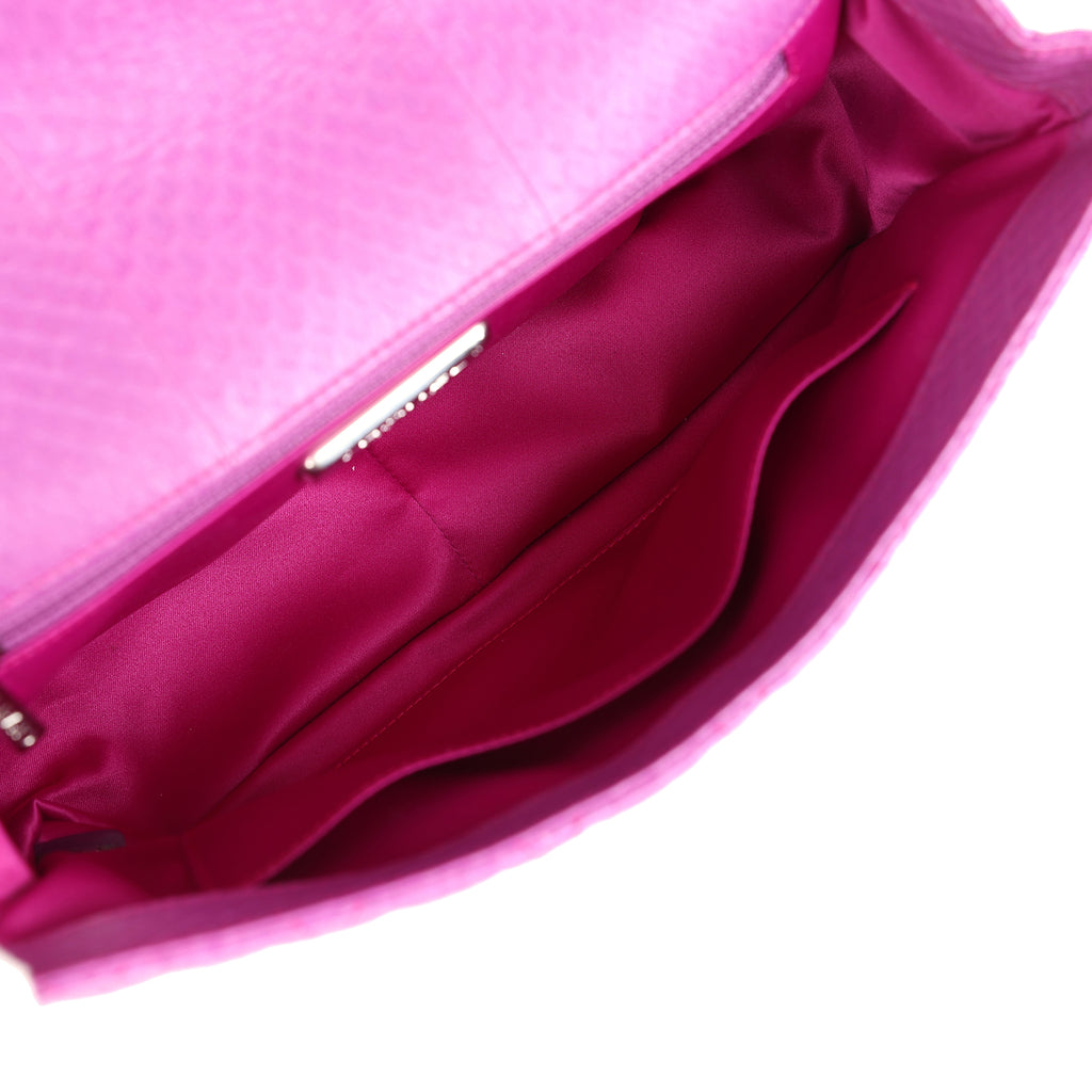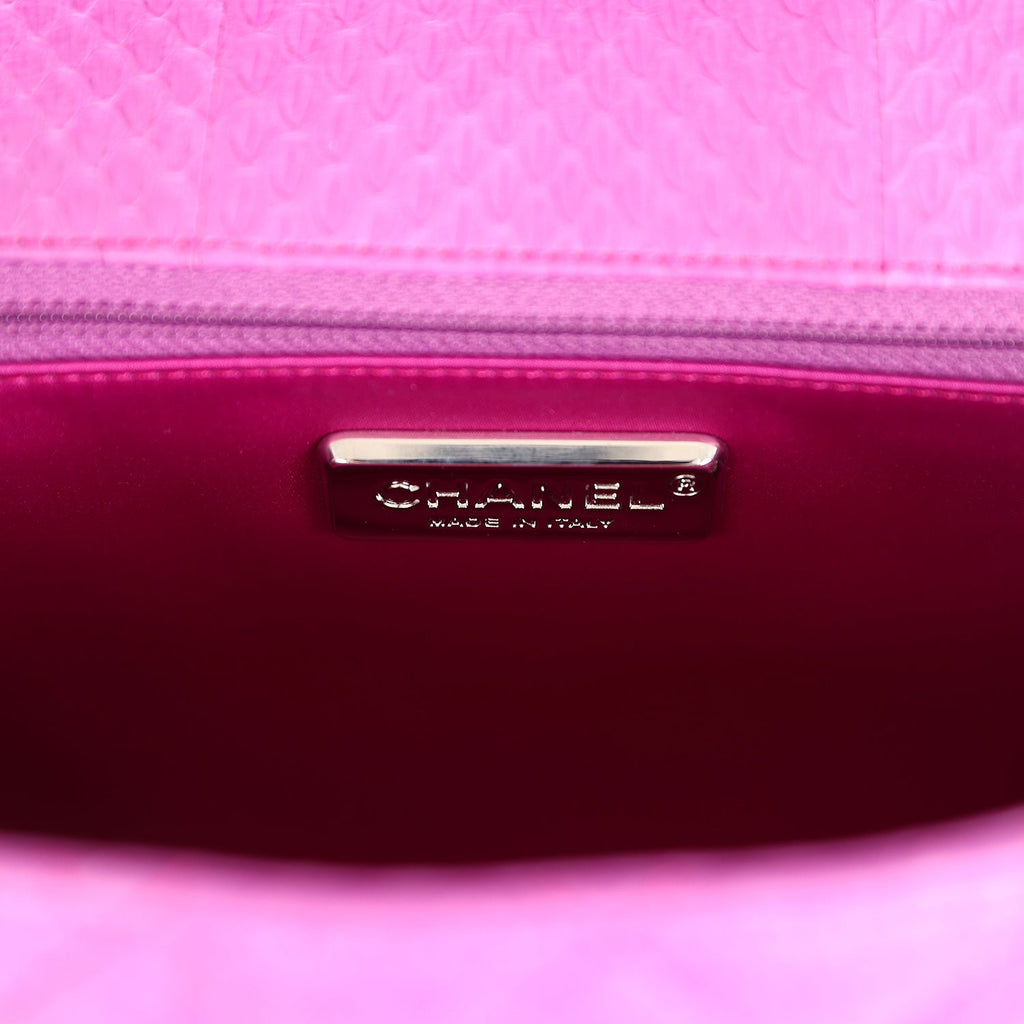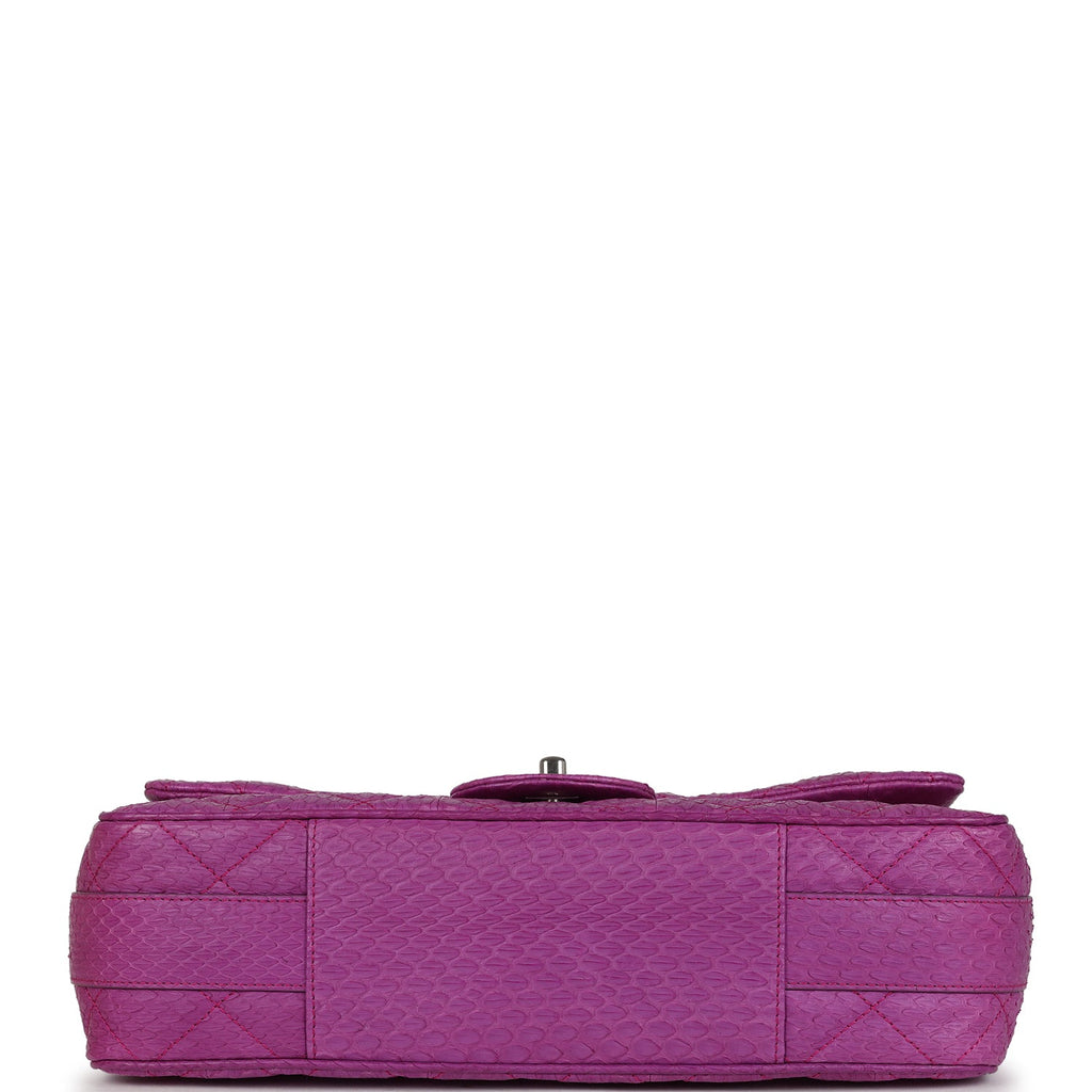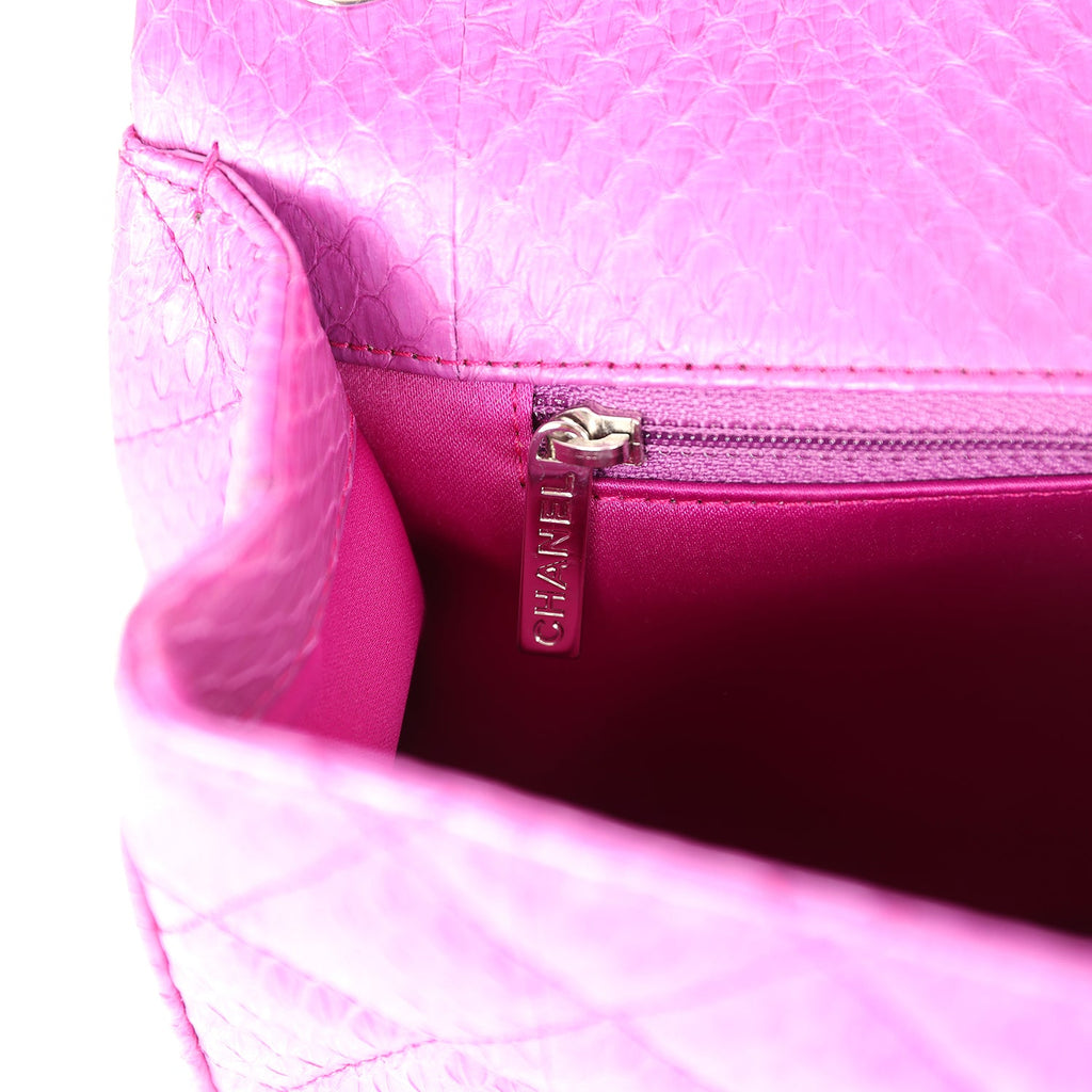 Pre-owned Chanel Medium Easy Carry Flap Bag Purple Python Silver Hardware Shop for an authentic pre-owned Chanel Medium Easy Carry Flap Bag in purple python with silver hardware in mint condition at Madison Avenue Couture.