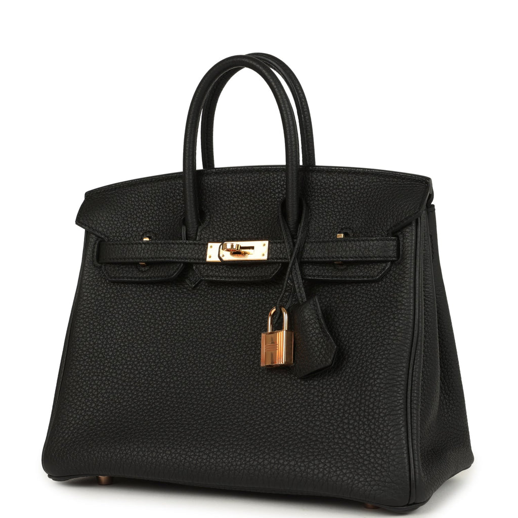 Pre-owned Hermes Birkin 25 Black Togo Rose Gold Hardware Shop for an authentic pre-owned Hermes Birkin 25 in Black togo leather with rose gold hardware in mint condition at Madison Avenue Couture.