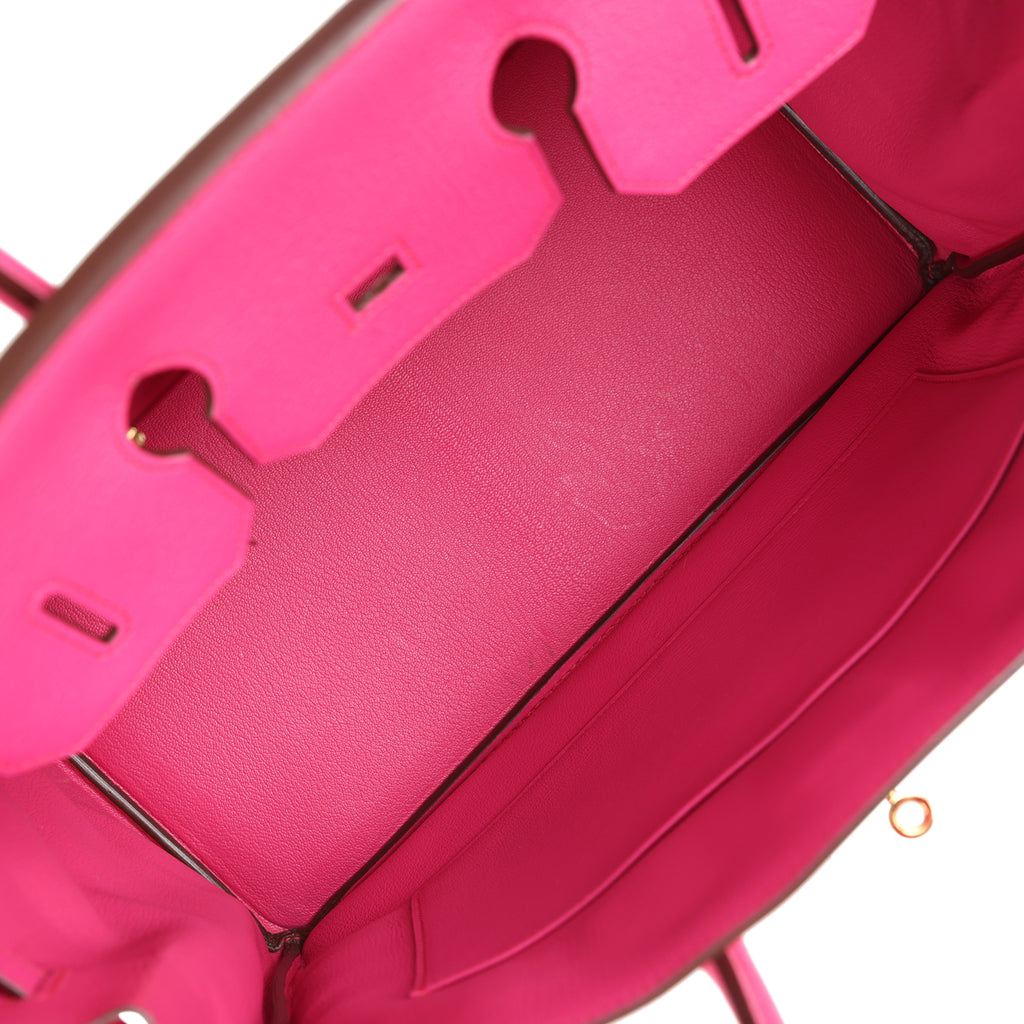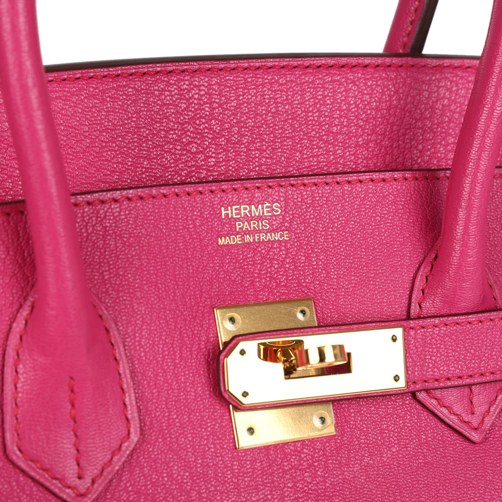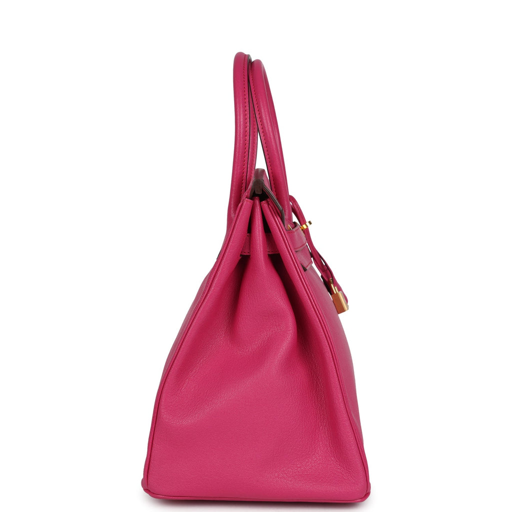 Pre-owned Hermes Birkin 35 Rose Shocking Chevre Mysore Gold Hardware Shop for an authentic pre-owned Hermes Birkin 35 in Rose Shocking chevre mysore leather with gold hardware in excellent condition at Madison Avenue Couture.