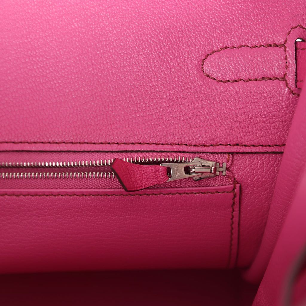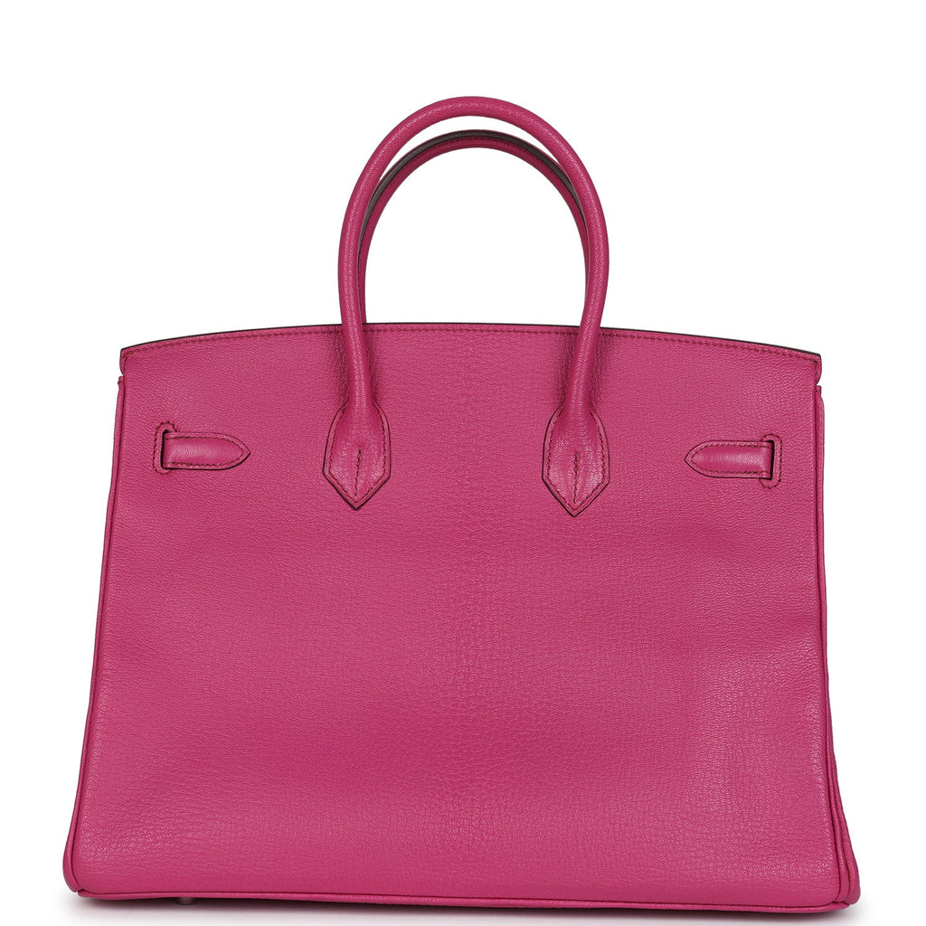 Pre-owned Hermes Birkin 35 Rose Shocking Chevre Mysore Palladium Hardware Shop for an authentic pre-owned Hermes Birkin 35 in Rose Shocking chevre mysore leather with palladium hardware in excellent condition at Madison Avenue Couture.