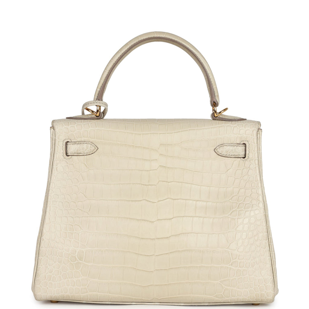 Pre-owned Hermes Kelly Retourne 25 Beton Matte Alligator Gold Hardware Shop for an authentic pre-owned Hermes Kelly 25 in Beton Matte Alligator Mississippiensis with gold hardware in mint condition at Madison Avenue Couture.