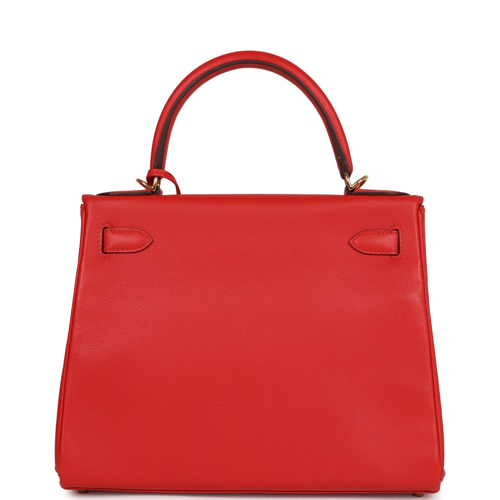 Pre-owned Hermes Kelly Retourne 28 Rouge Tomate Evercolor Gold Hardware Shop for an authentic pre-owned Hermes Kelly 28 in Rouge Tomate evercolor with gold hardware in mint condition at Madison Avenue Couture.