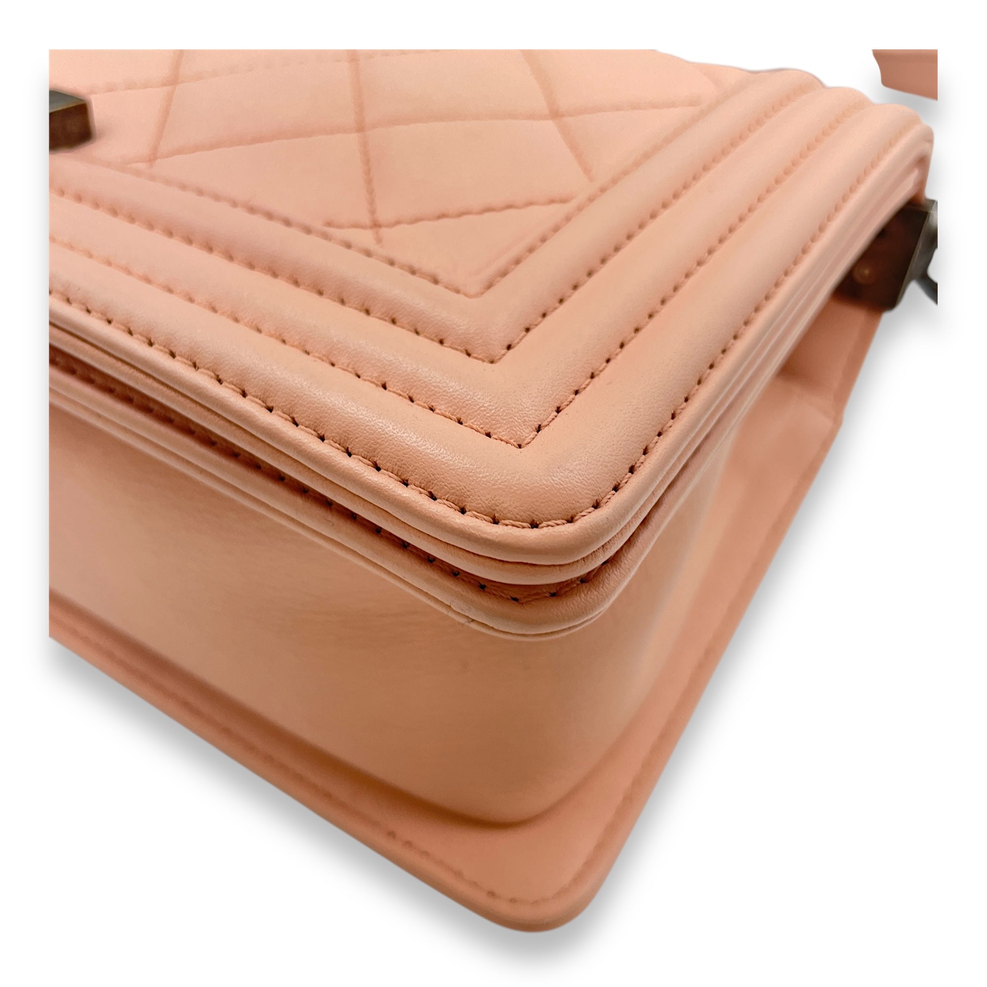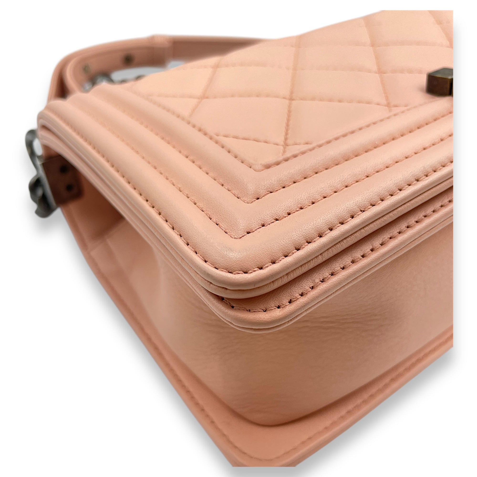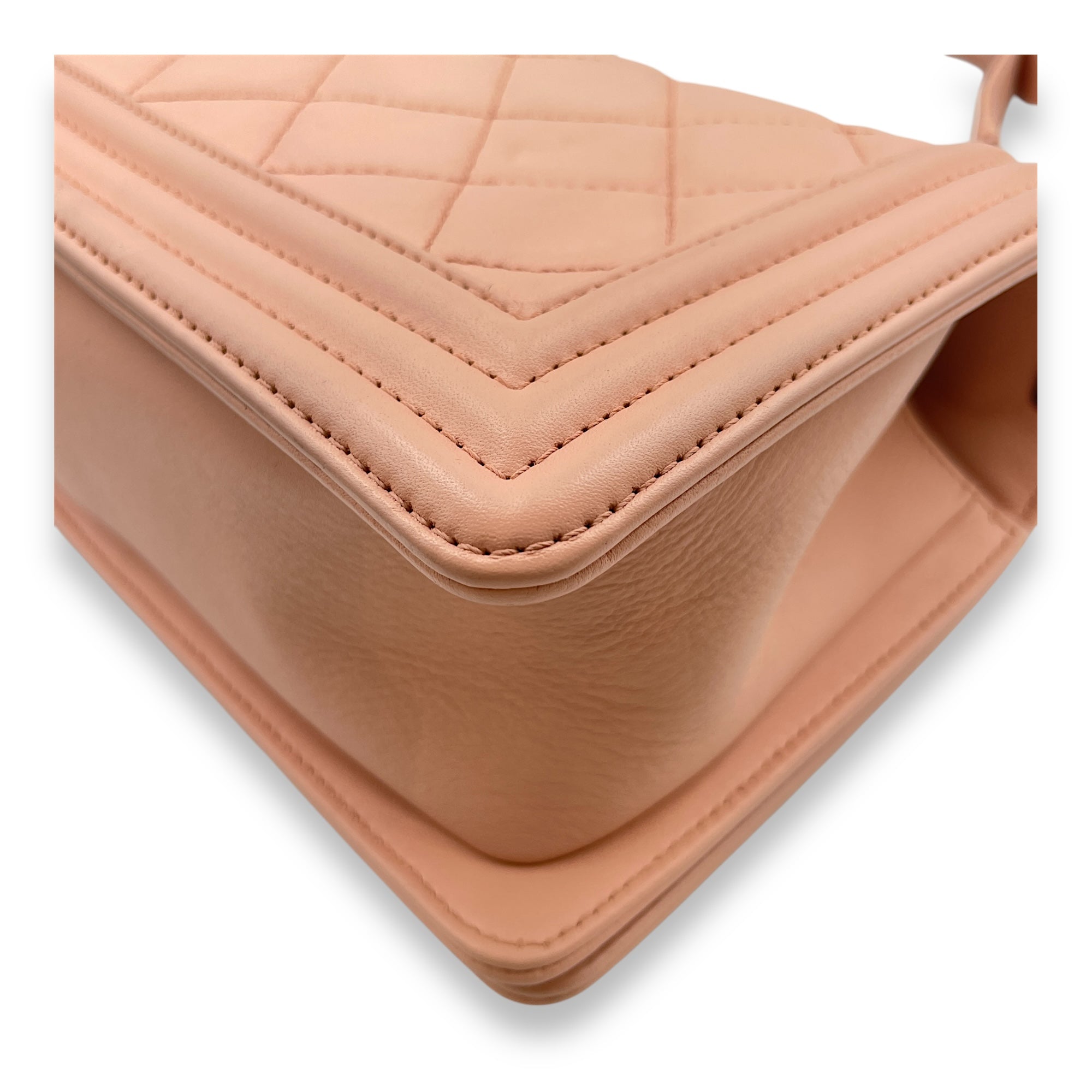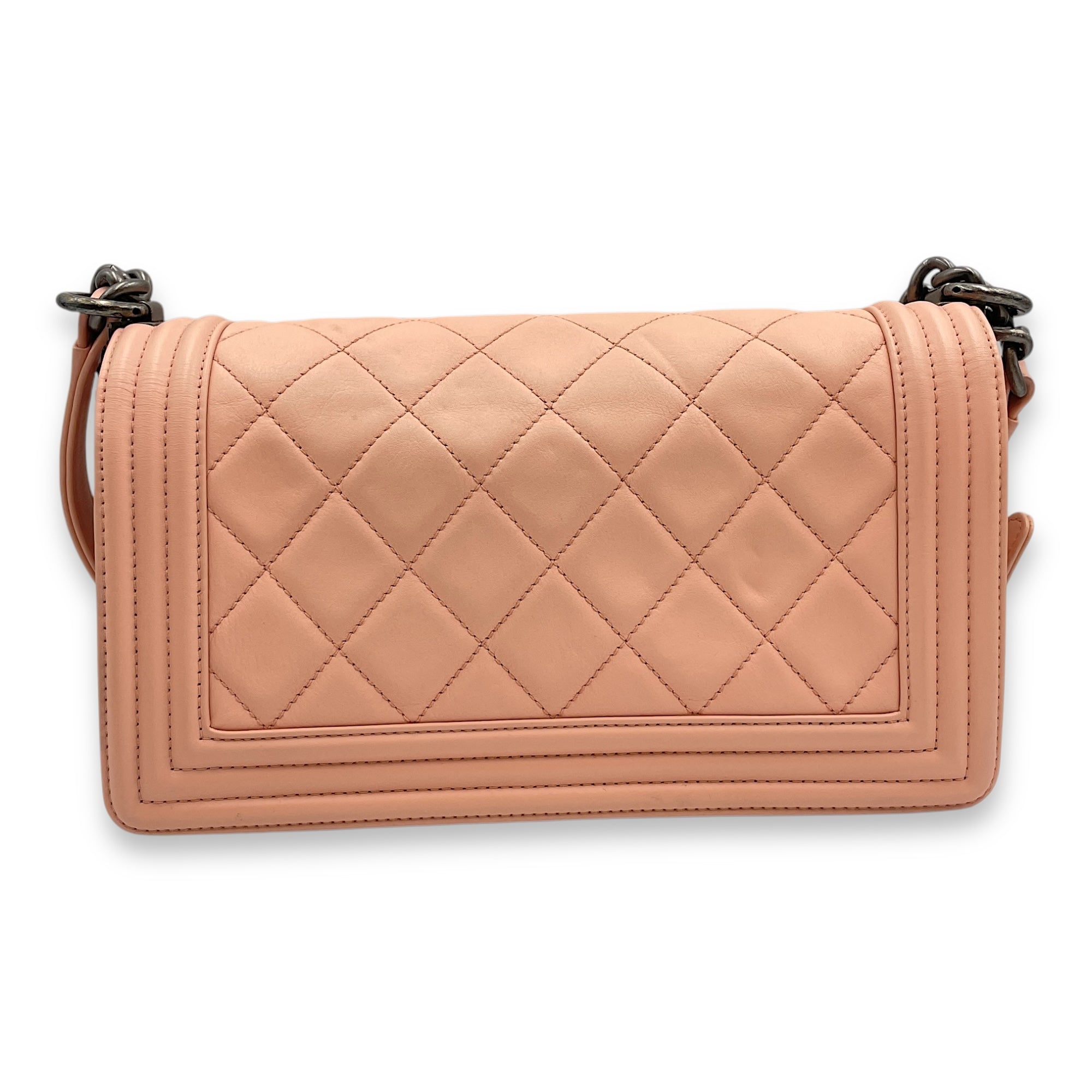 Quilted Boy (25cm) Medium Pink Crossbody Bag in Calfskin, Ruthenium hardware