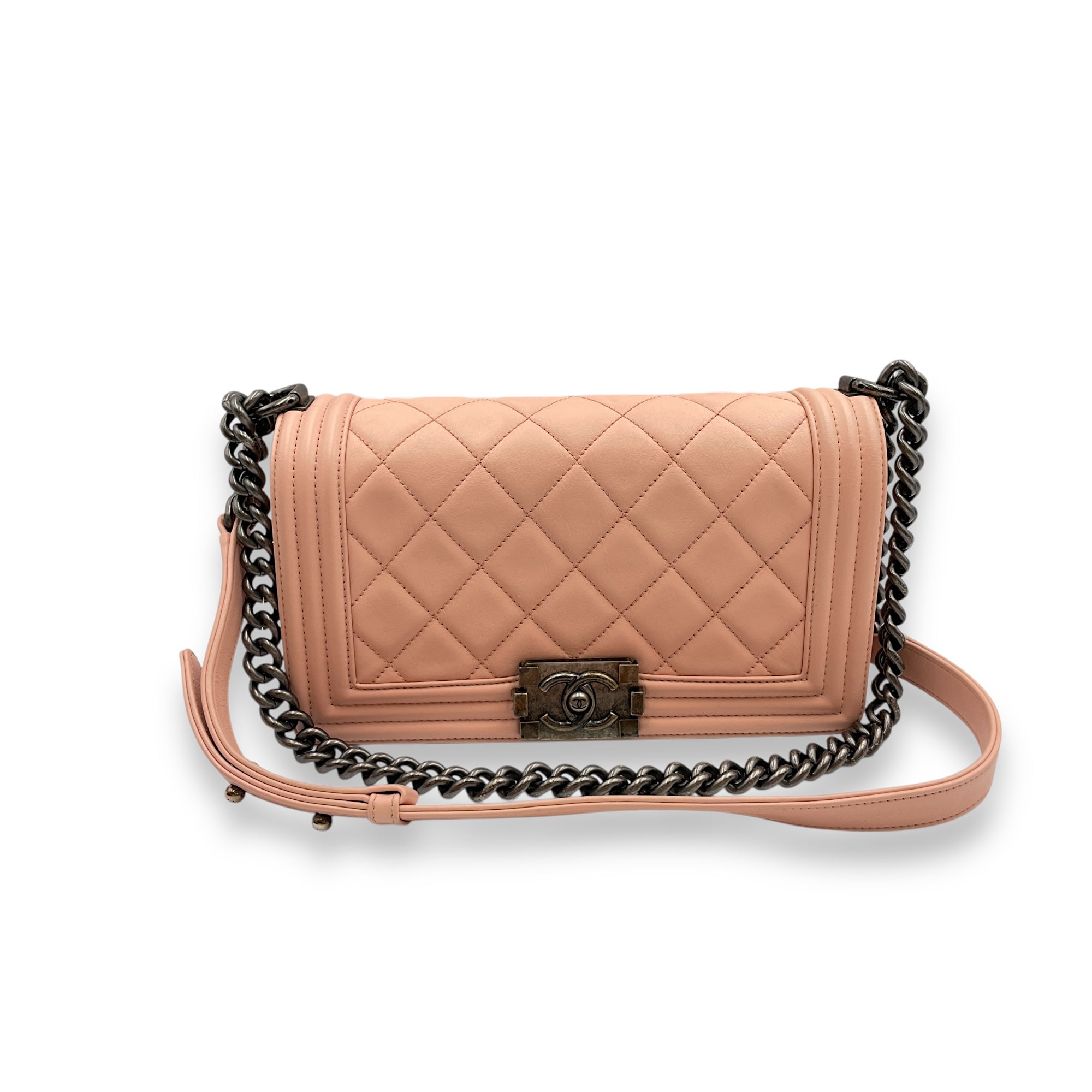 Be the first to review “Quilted Boy (25cm) Medium Pink Crossbody Bag in Calfskin, Ruthenium hardware”