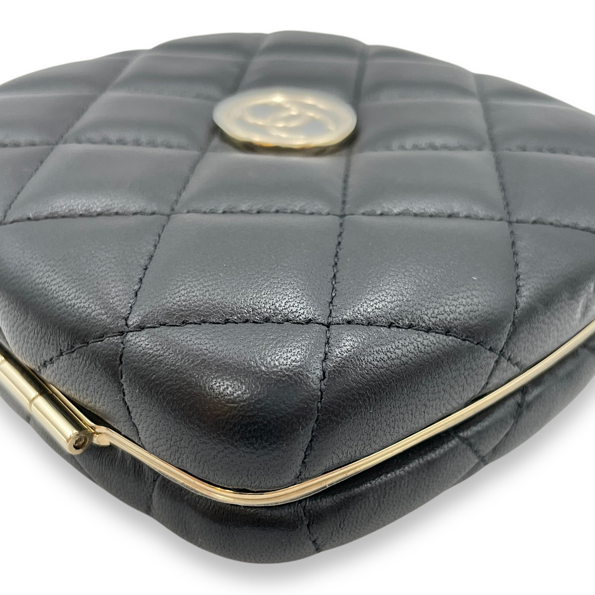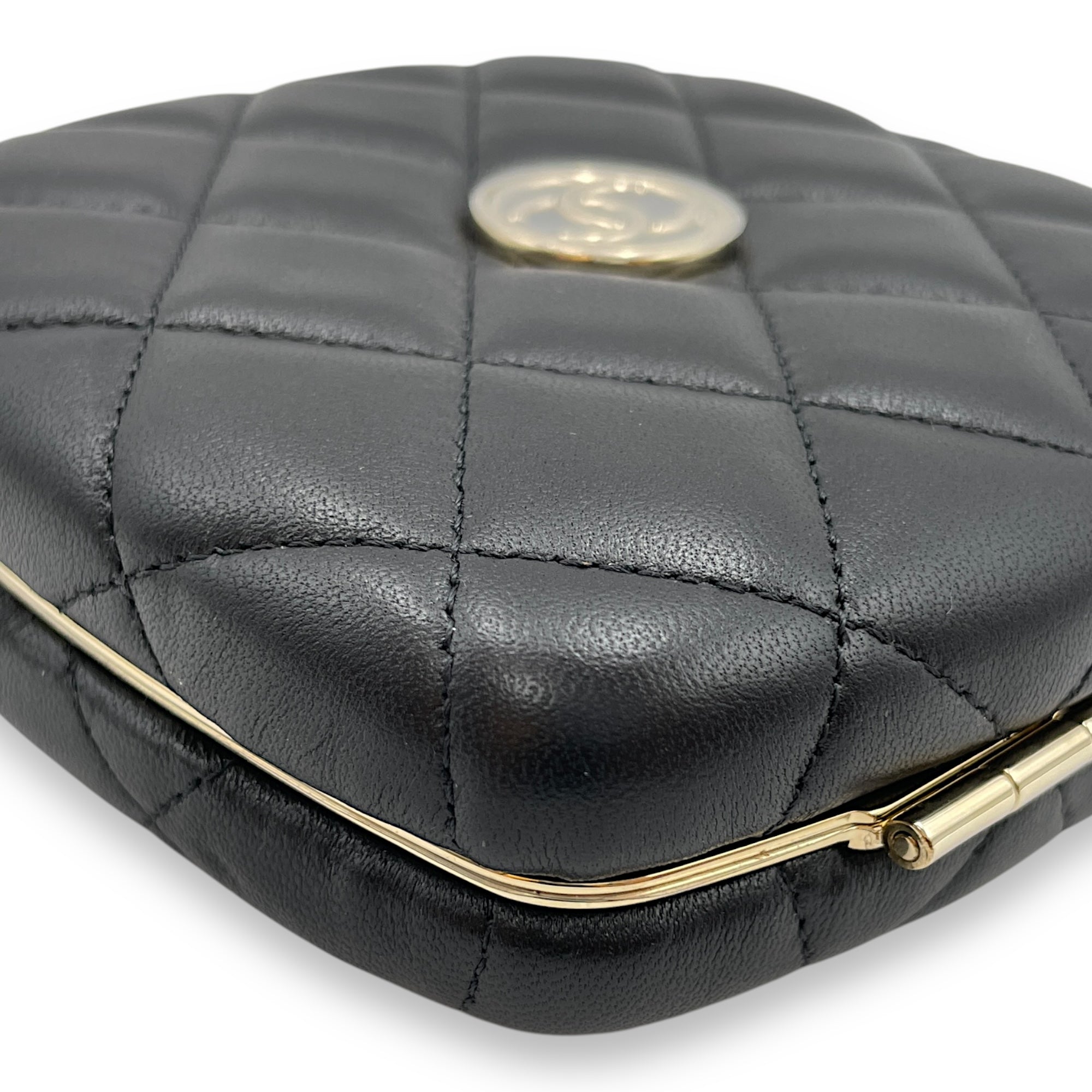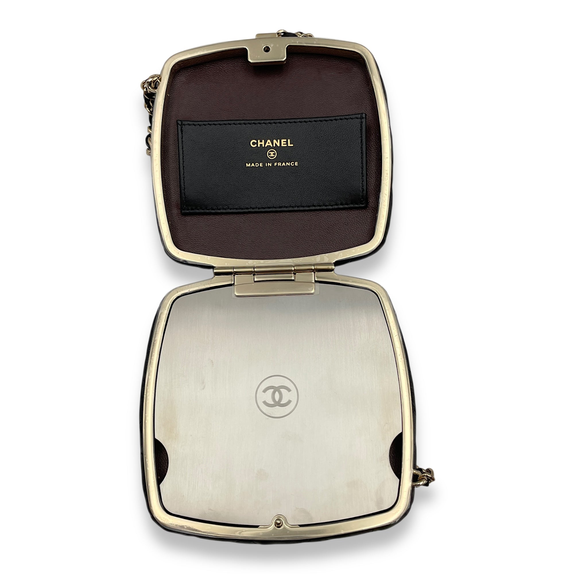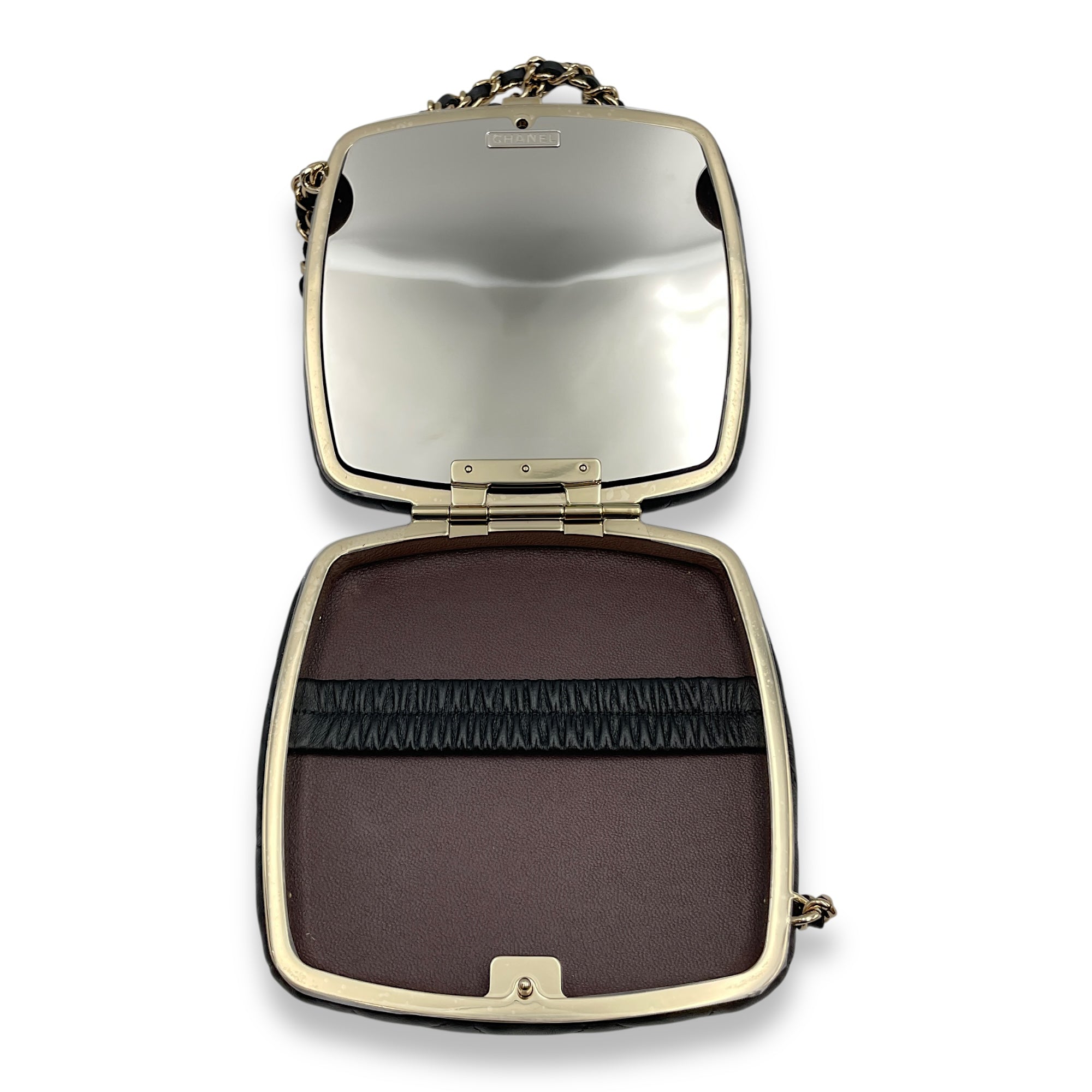 Quilted Compact Black Vanity Bag in Lambskin, Gold hardware