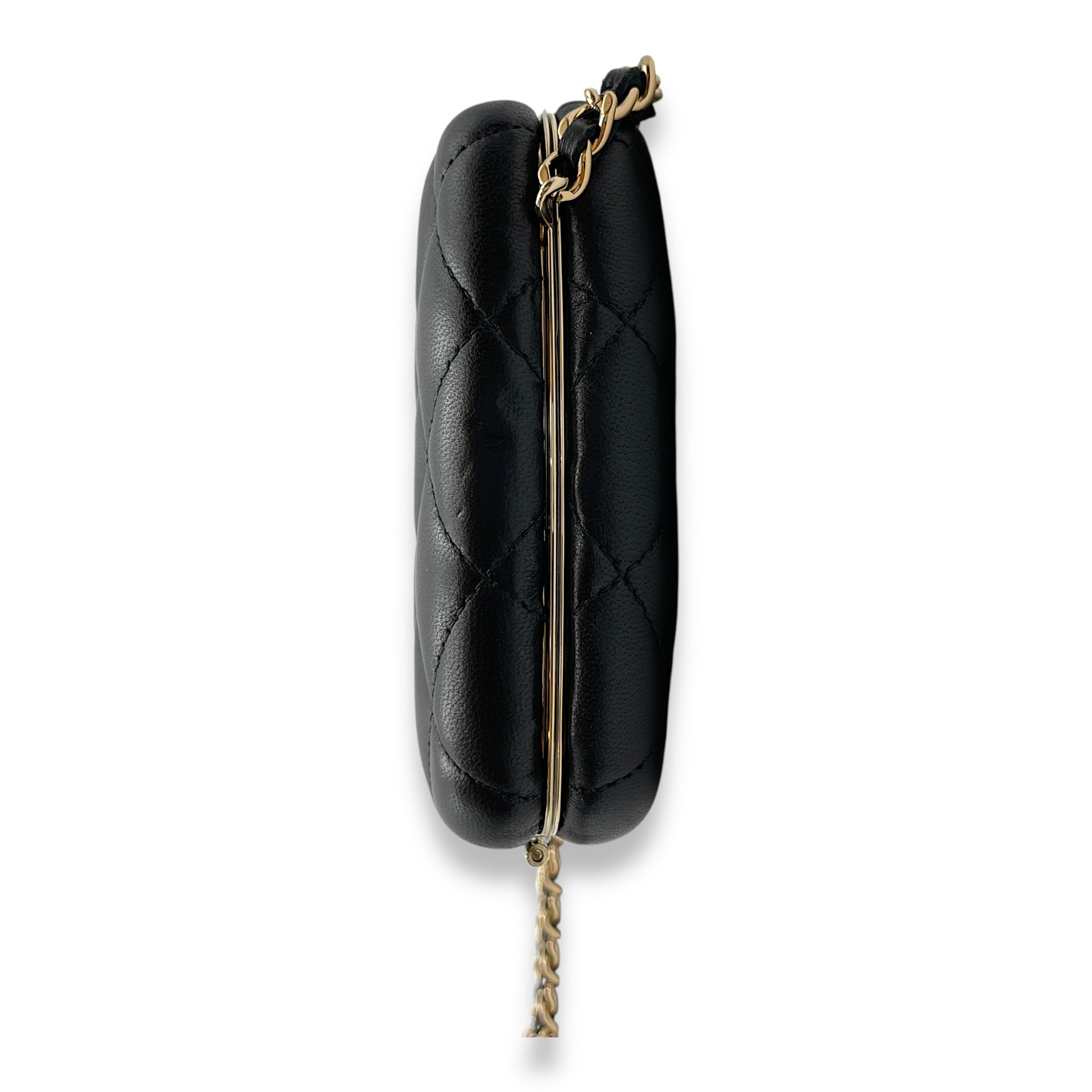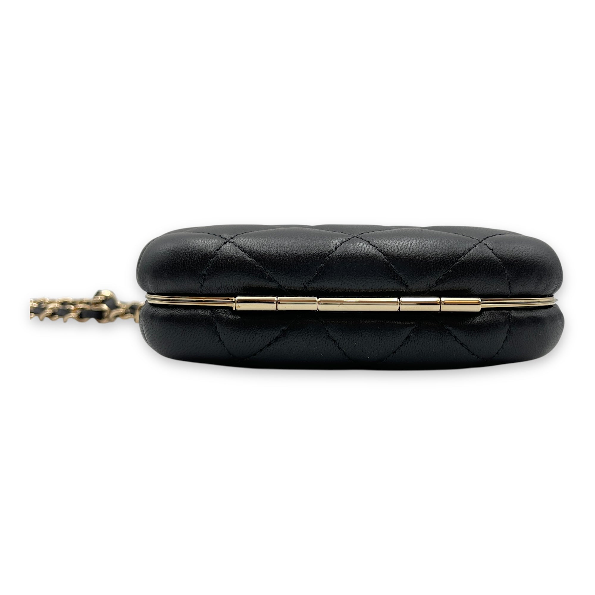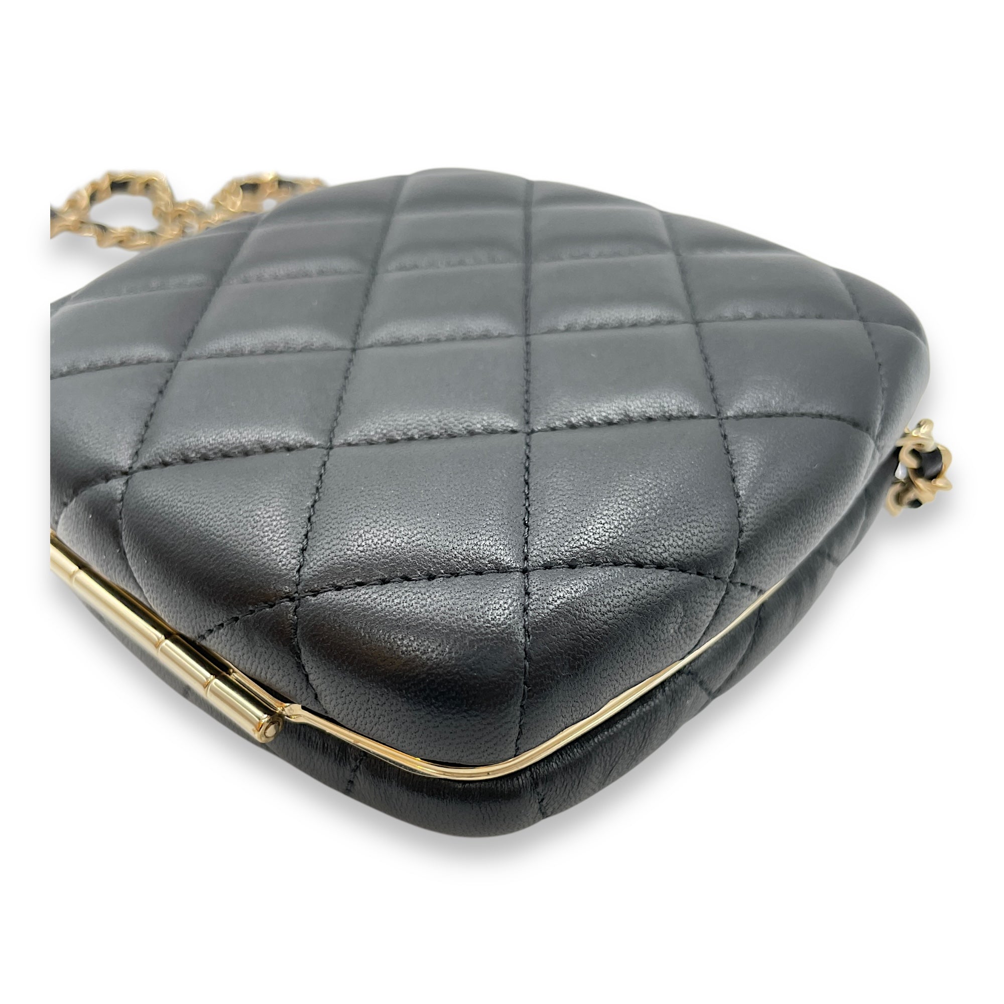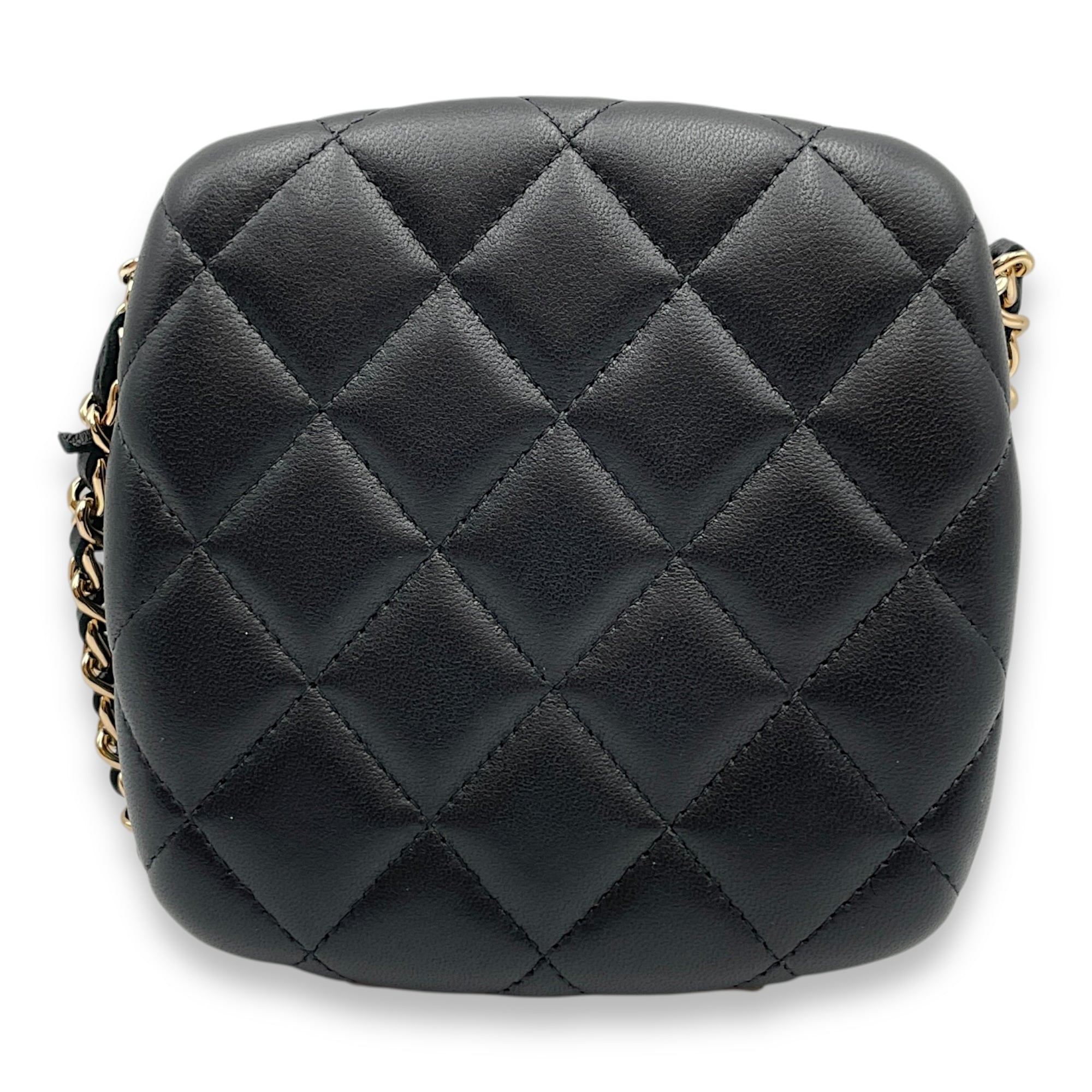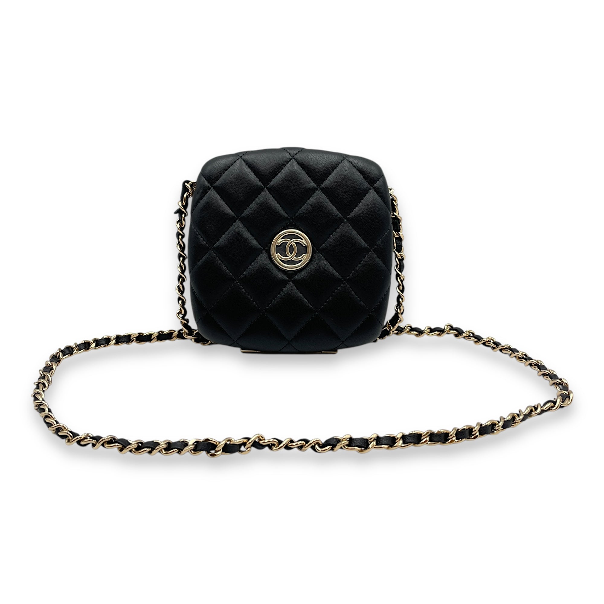 Quilted Compact Black Vanity Bag in Lambskin, Gold hardware