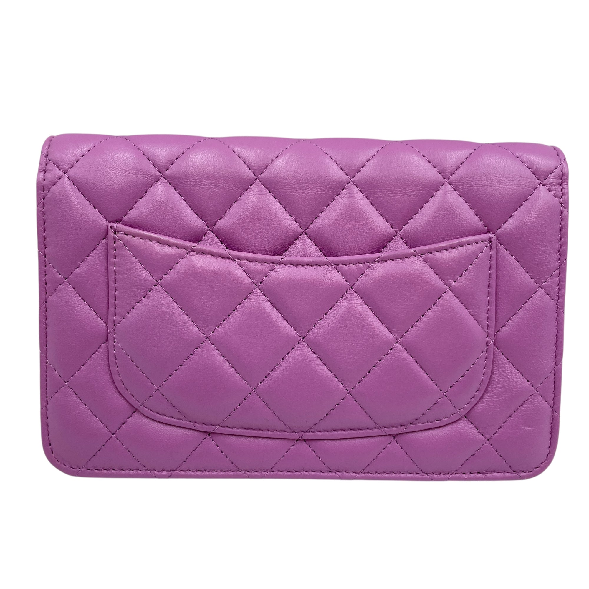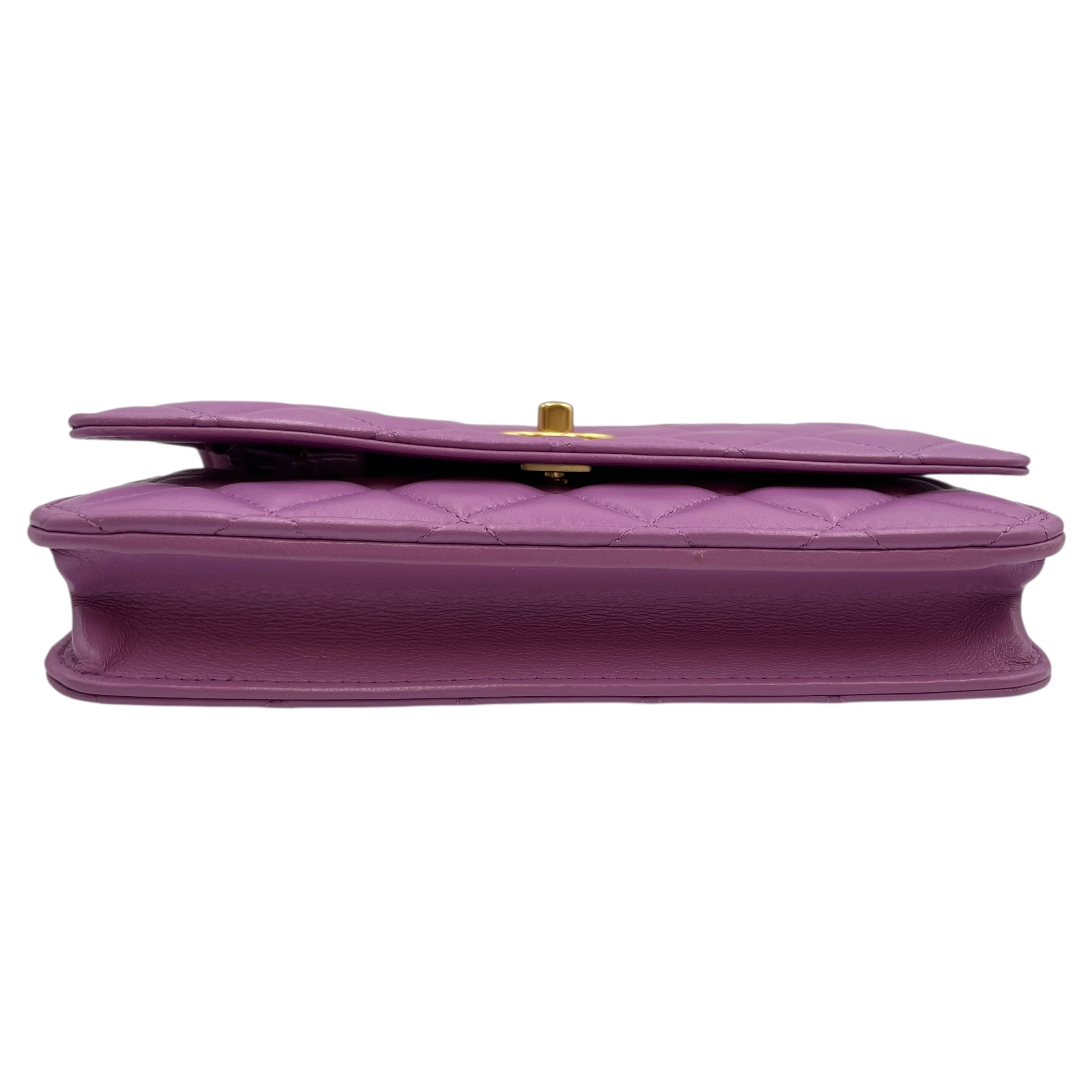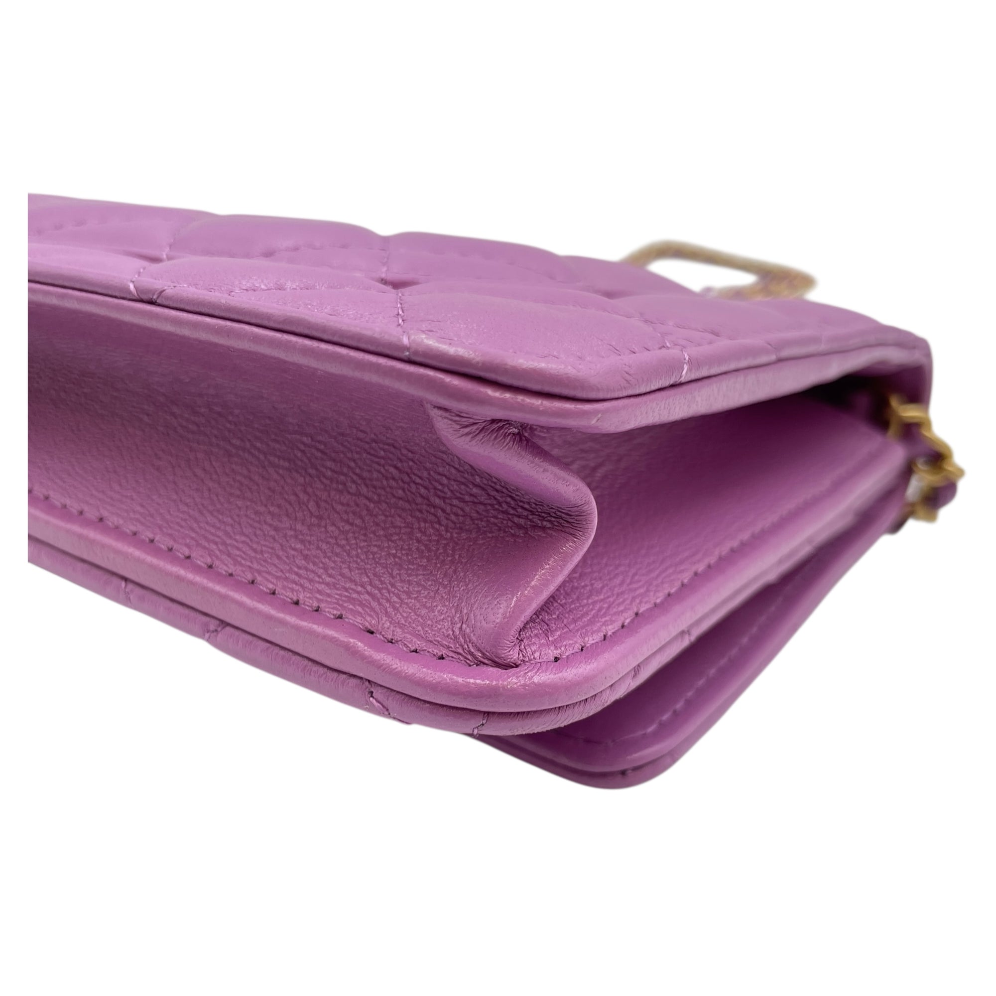 Quilted Purple Wallet on Chain with Pearl Crush in Lambskin, Gold hardware
