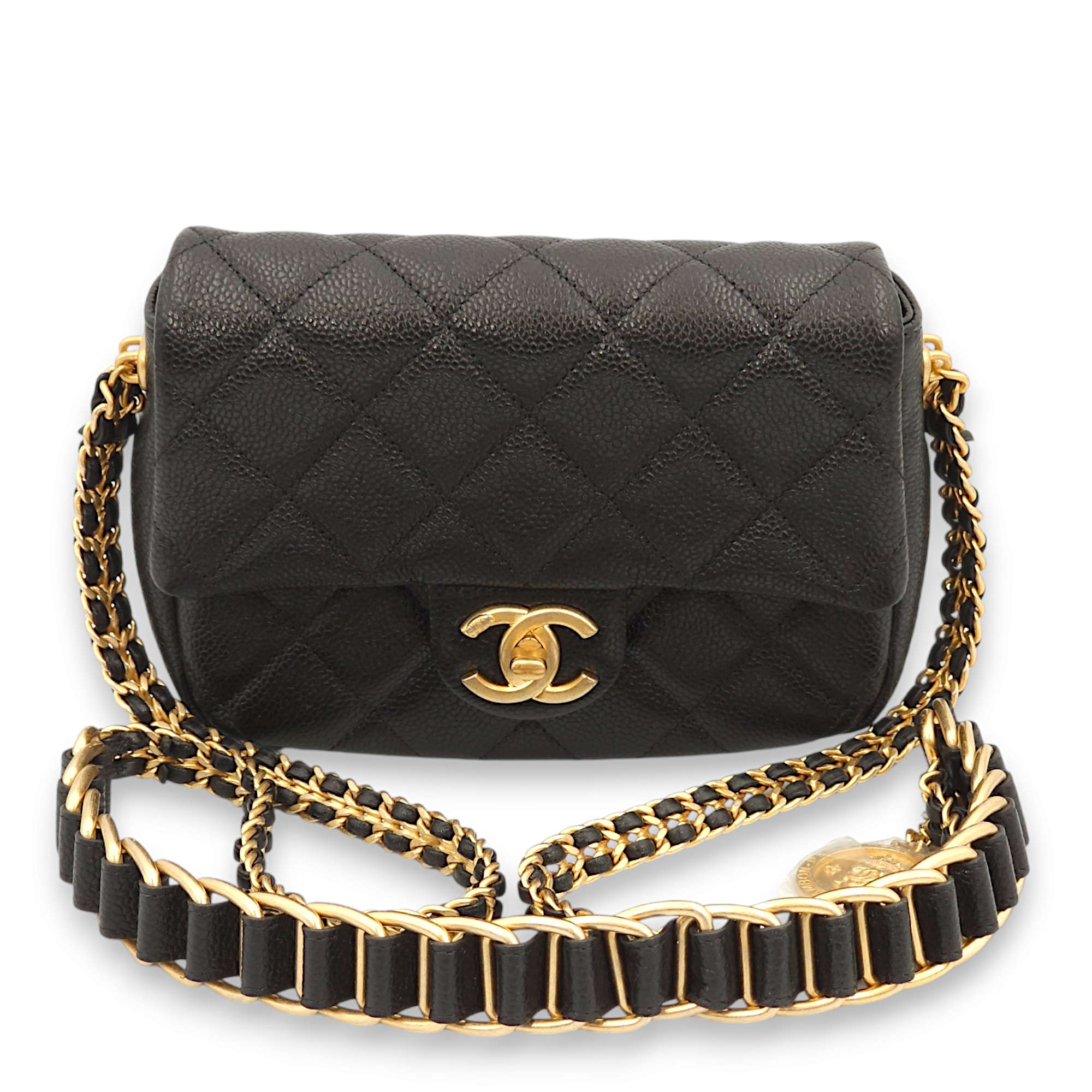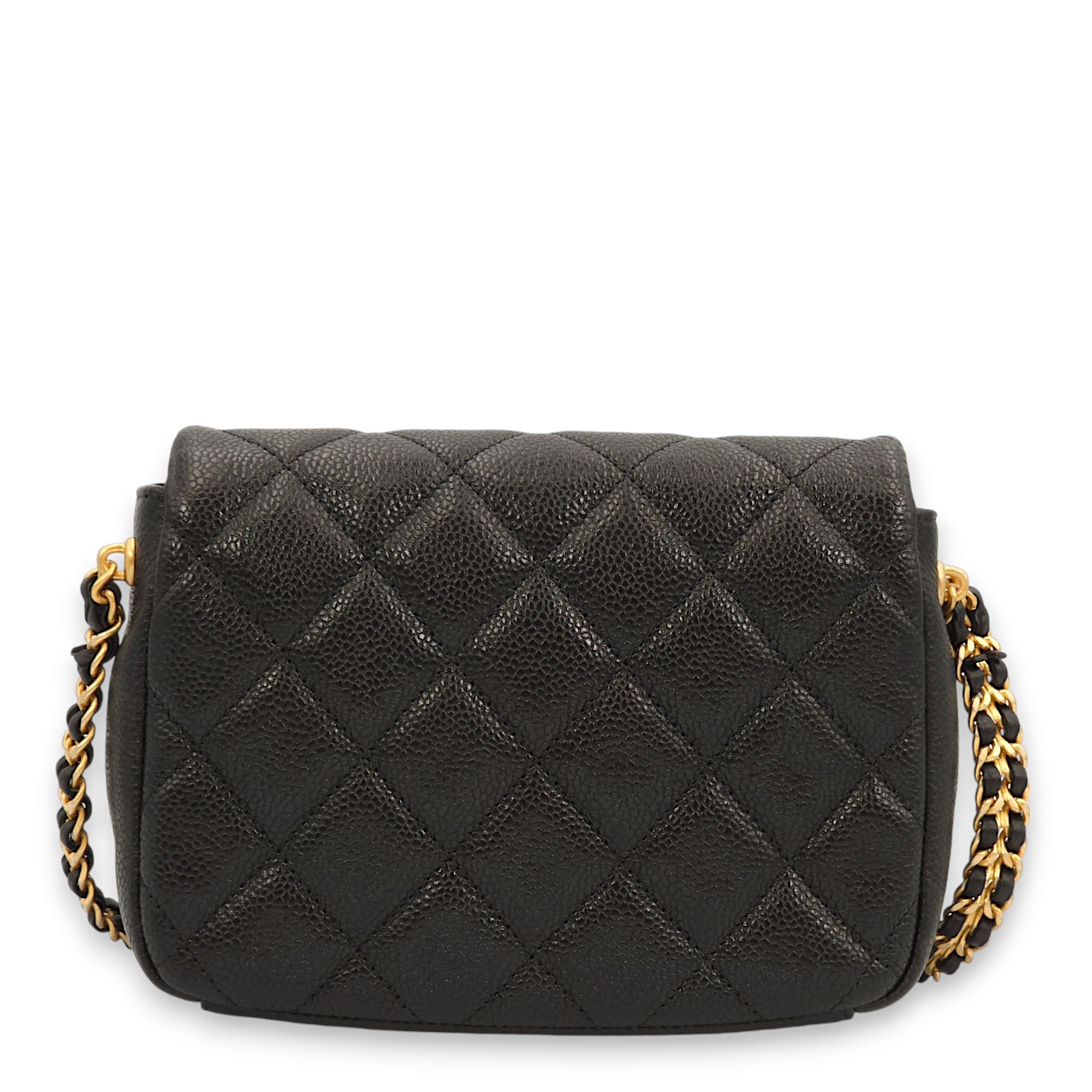 Quilted Seasonal Flap with Coco Medallion Charm Black Crossbody Bag in Caviar Leather, Gold hardware