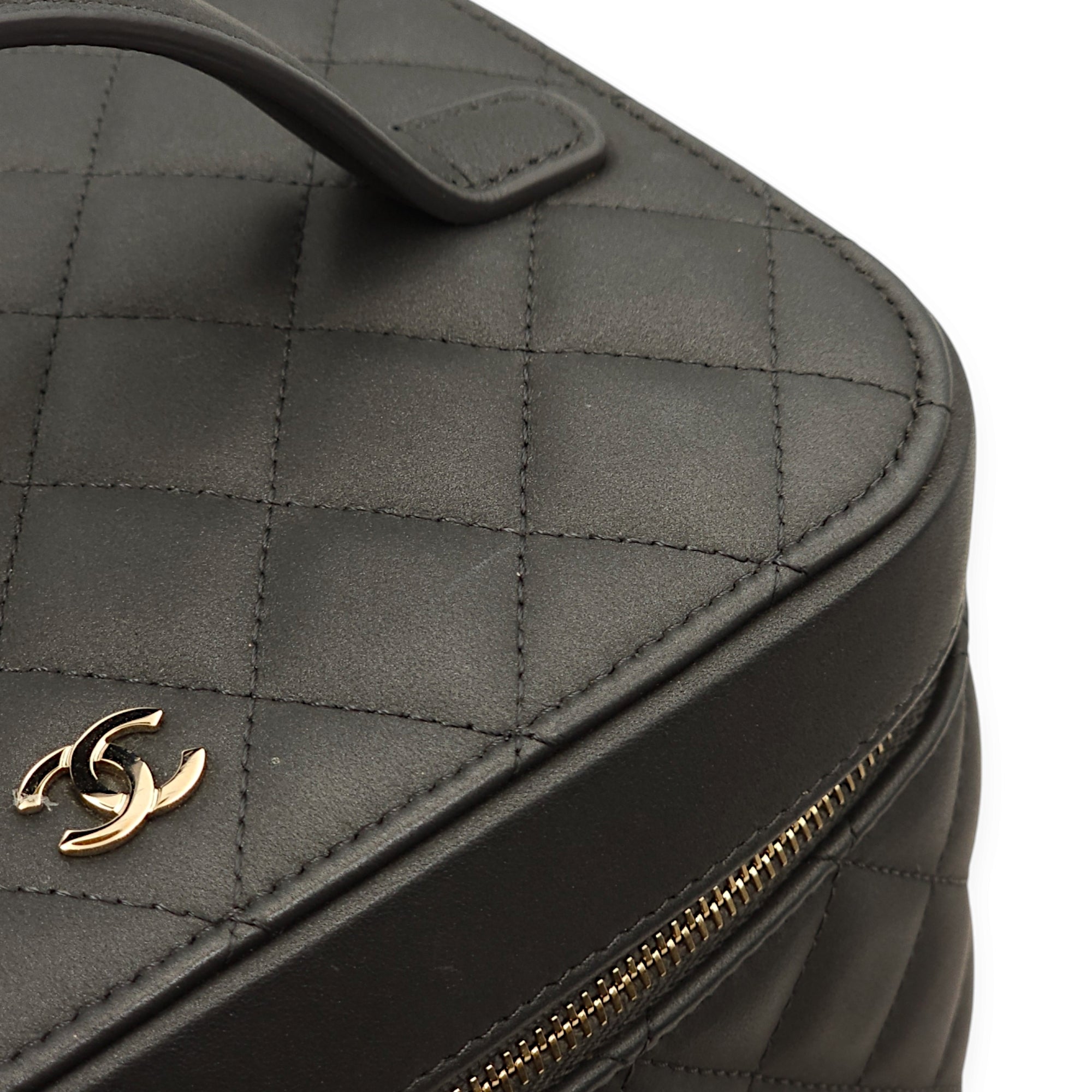 Quilted Vanity Grey Top Handle Bag in Lambskin, Gold hardware