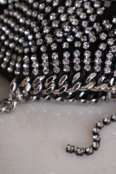 • Material: Black Faux Leather with Crystal Fringed Embellished