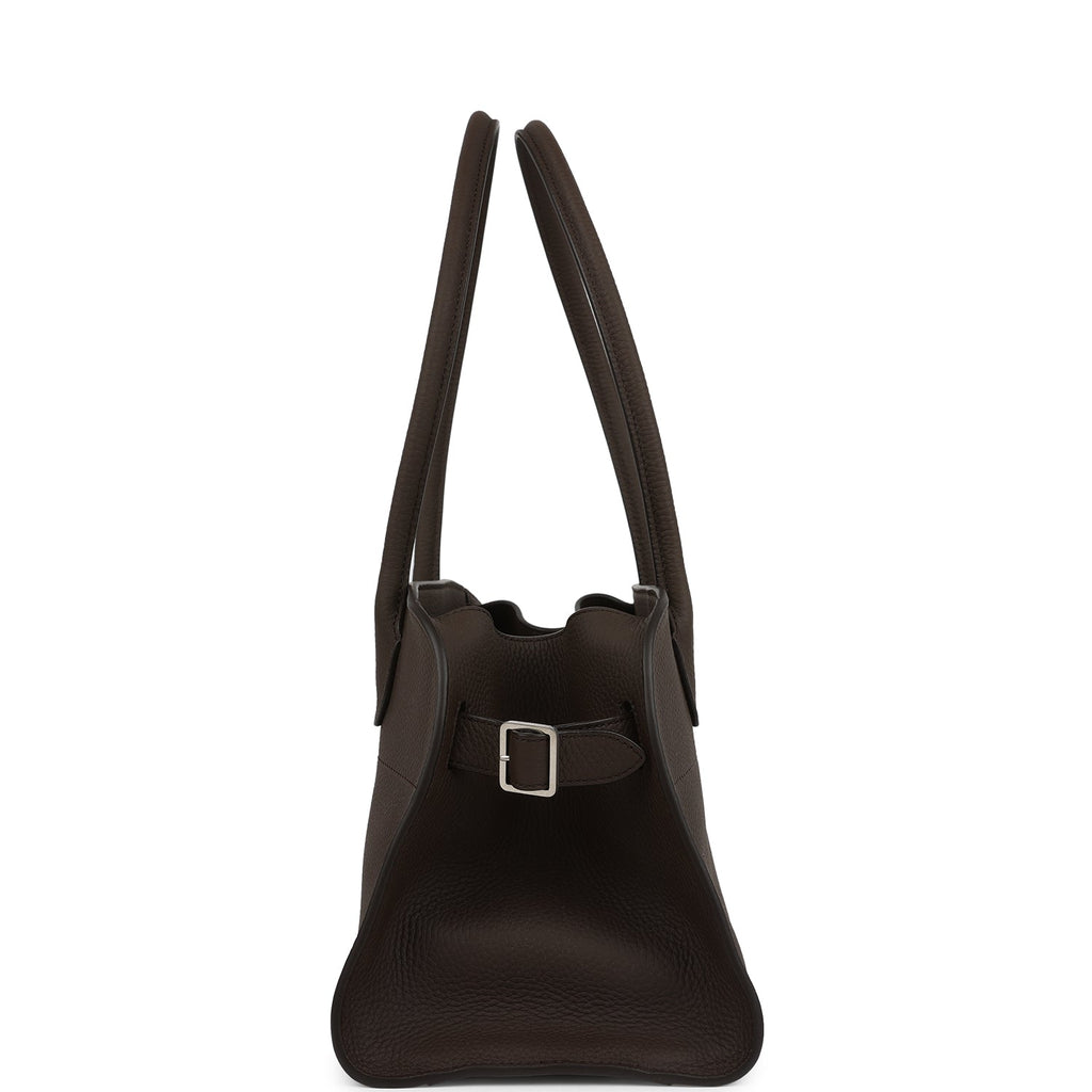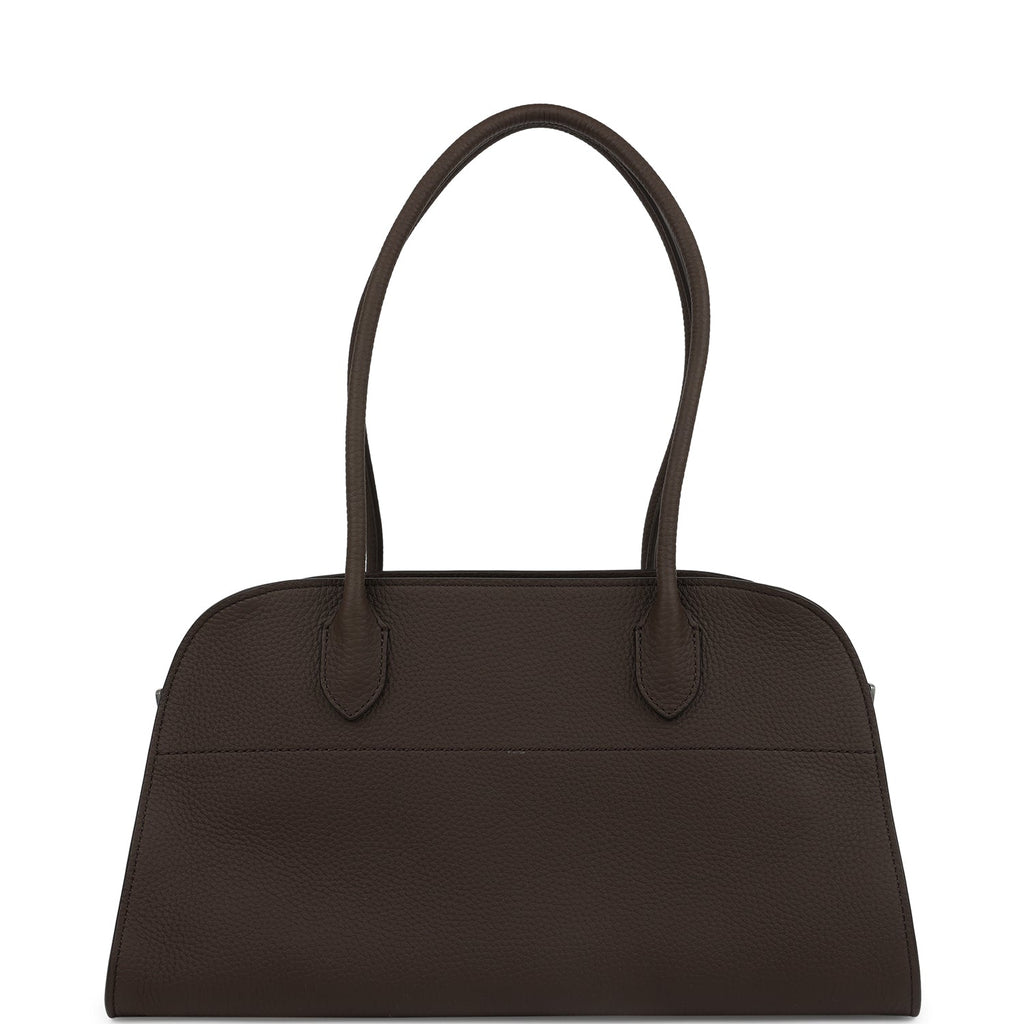 The Row Margaux Shoulder 12 Deep Brown Calfskin Silver Hardware Shop for an authentic The Row Soft Margaux 12 Shoulder Bag is in Deep Brown calfskin leather with silver hardware in new and never worn condition at Madison Avenue Couture.
