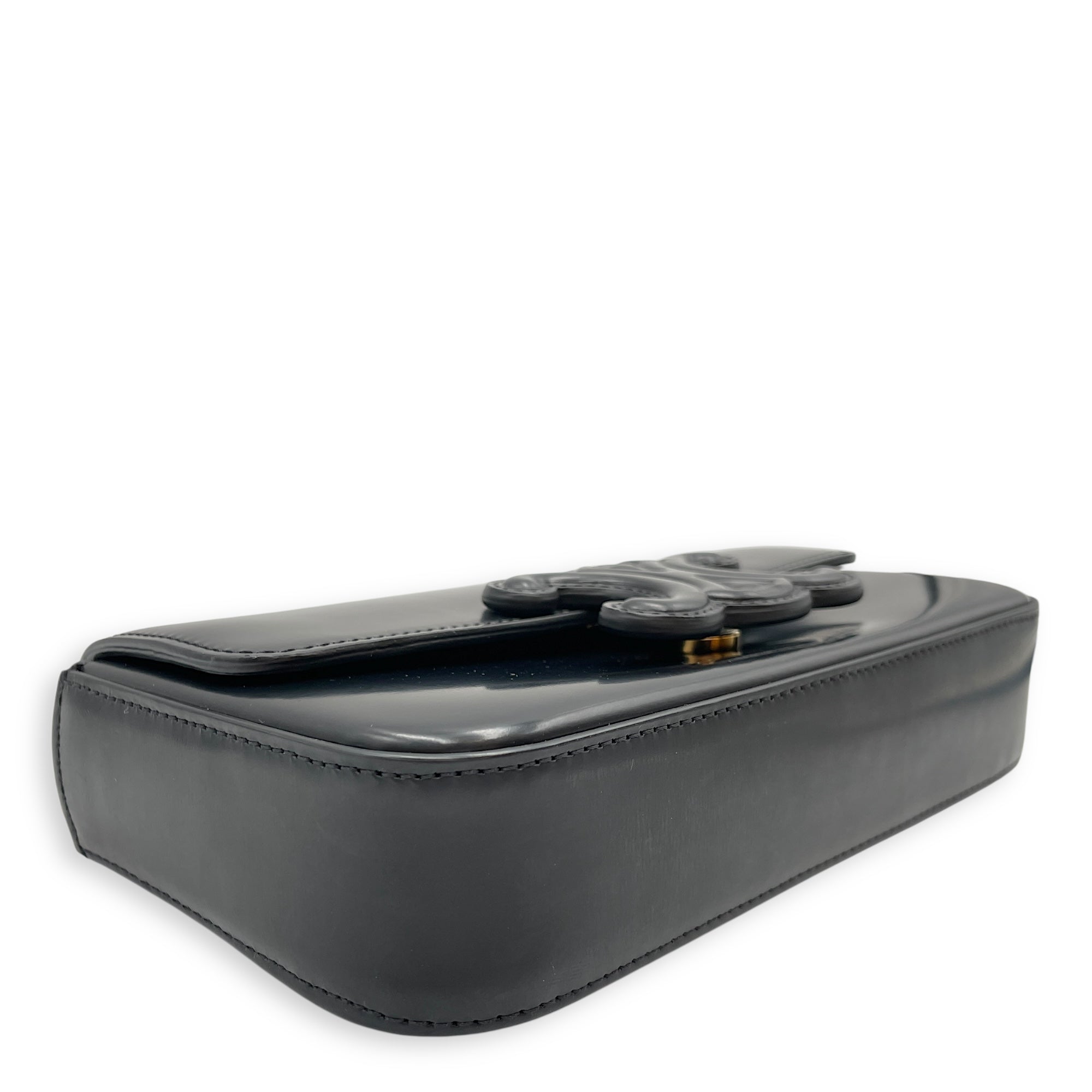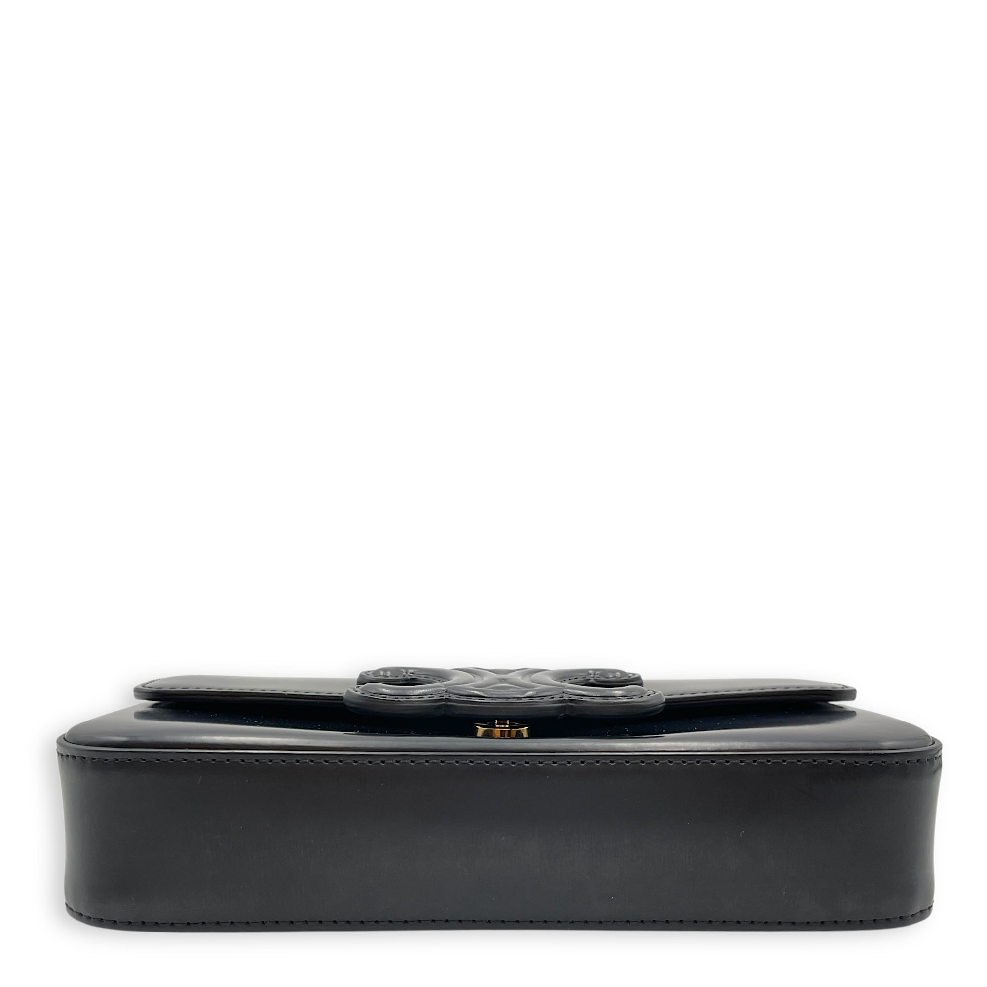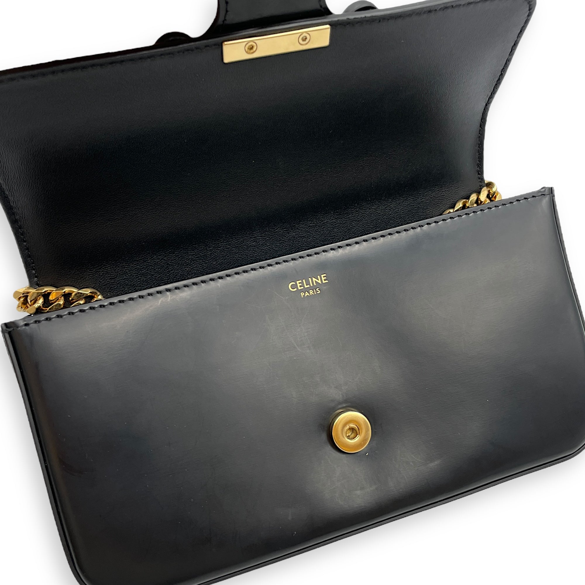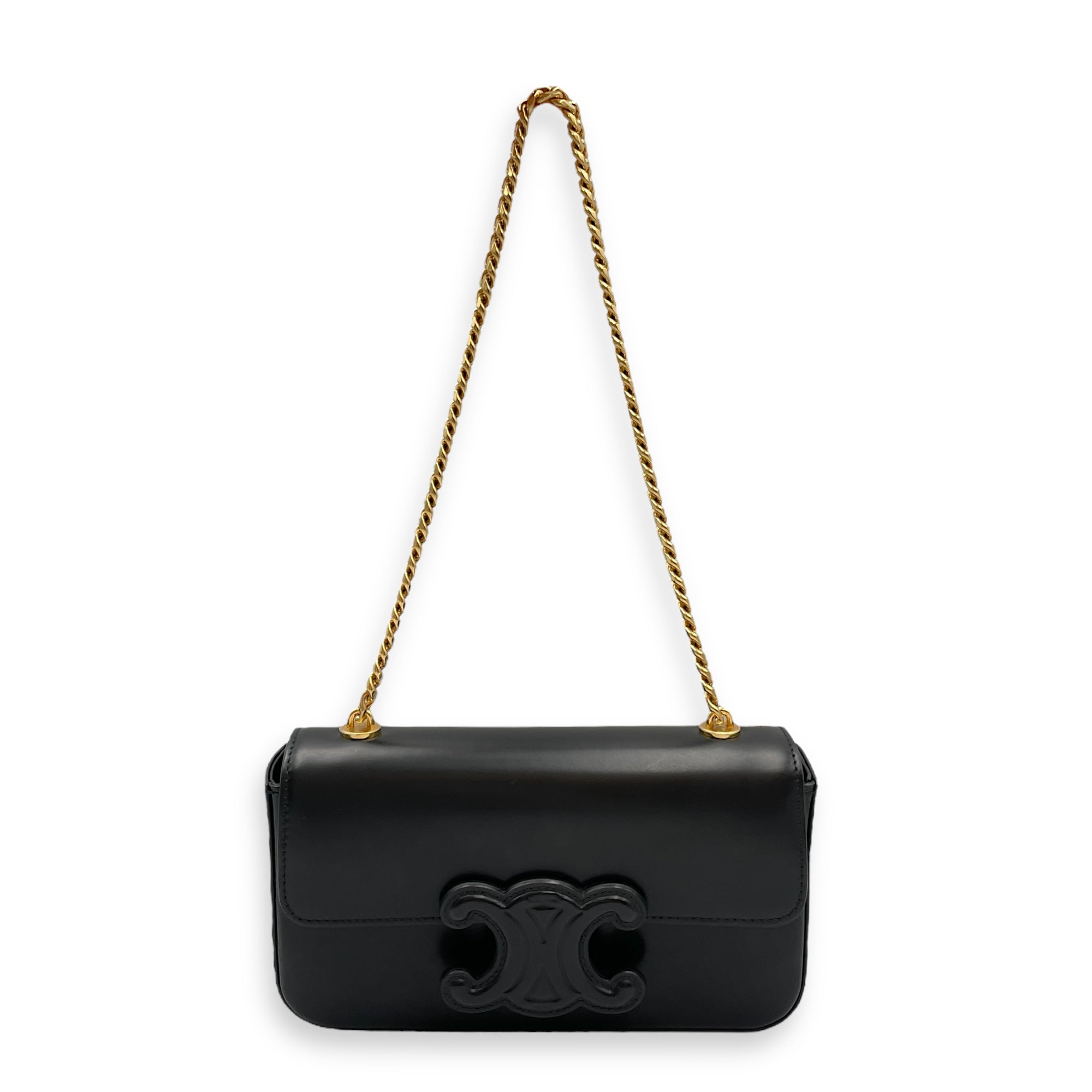 Triomphe Flap 20cm Black Shoulder Bag in Calfskin, Gold hardware