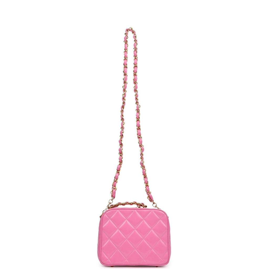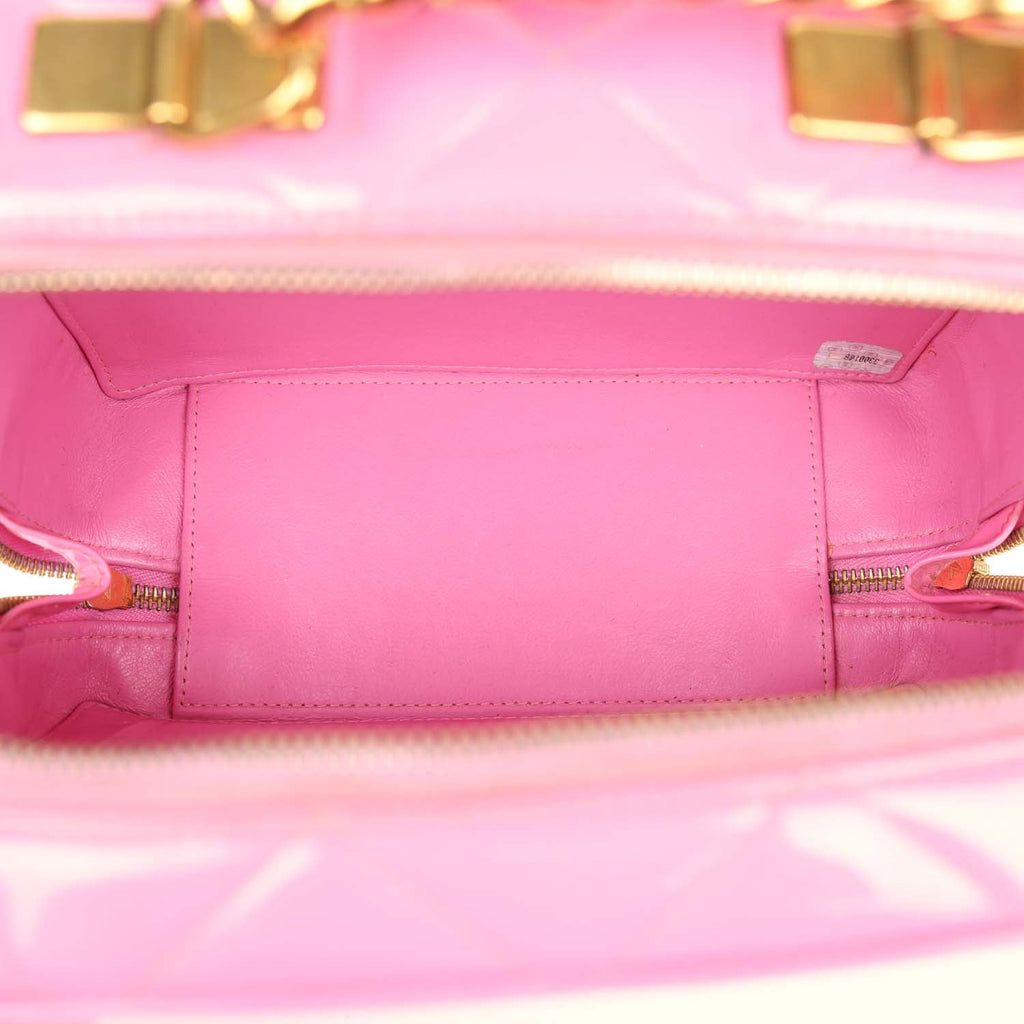 Vintage Chanel Lunchbox Vanity Bag Pink Patent Gold Hardware Shop for an authentic vintage Chanel Lunchbox Vanity Bag in pink patent leather with gold hardware in very good condition at Madison Avenue Couture.
