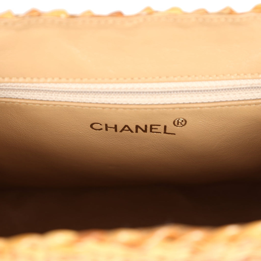 Vintage Chanel Small Picnic Basket Bag Natural Wicker Gold Hardware Shop for an authentic vintage Chanel picnic basket shoulder bag is in natural woven rattan wicker with gold hardware in excellent condition at Madison Avenue Couture.