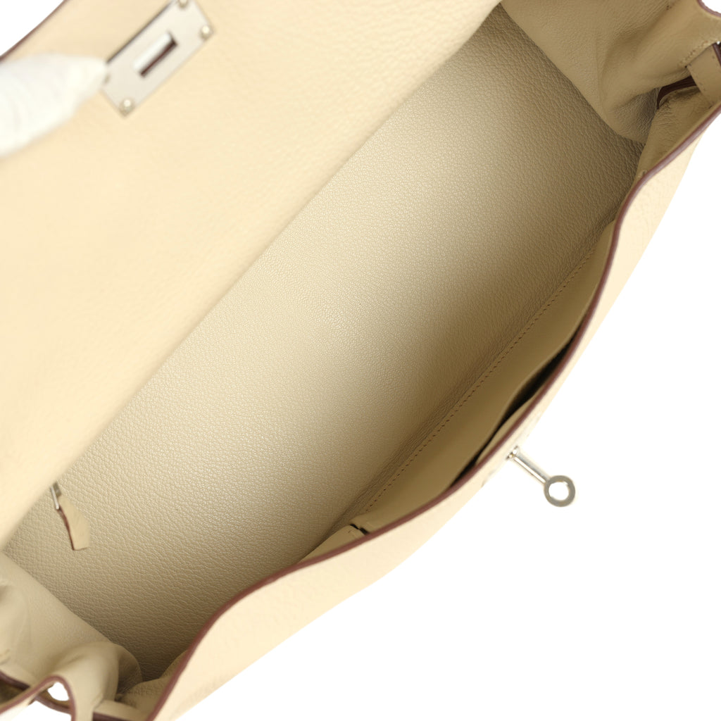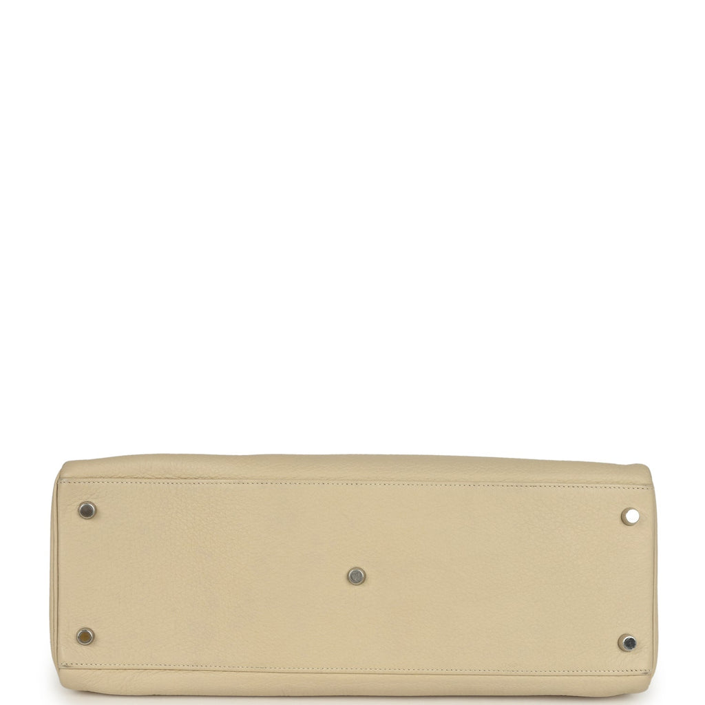 Vintage Hermes Shoulder Kelly 42 JPG Parchemin Clemence Palladium Hardware Shop for an authentic vintage Hermes Shoulder Kelly 42 JPG in Parchemin clemence leather with palladium hardware in excellent condition at Madison Avenue Couture.