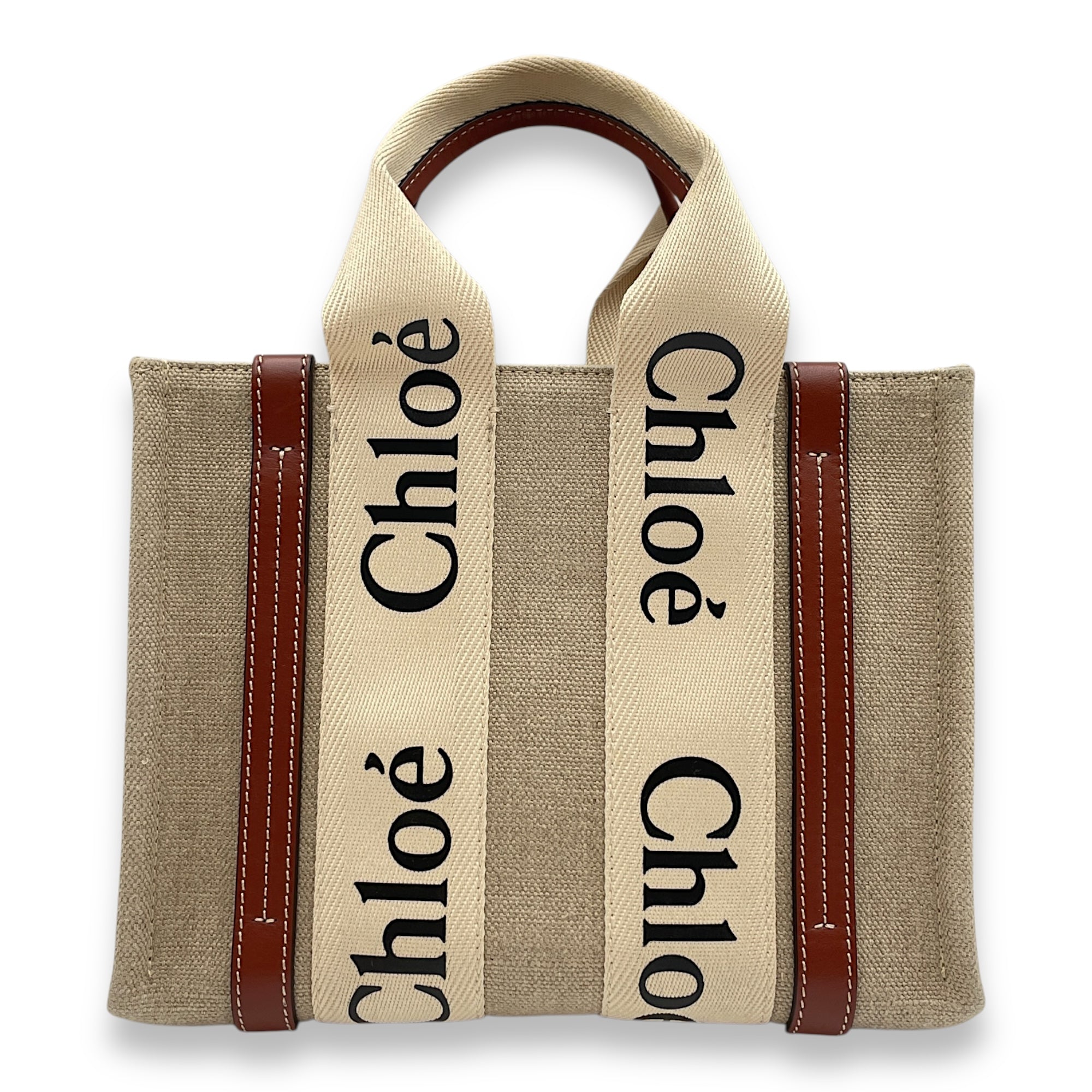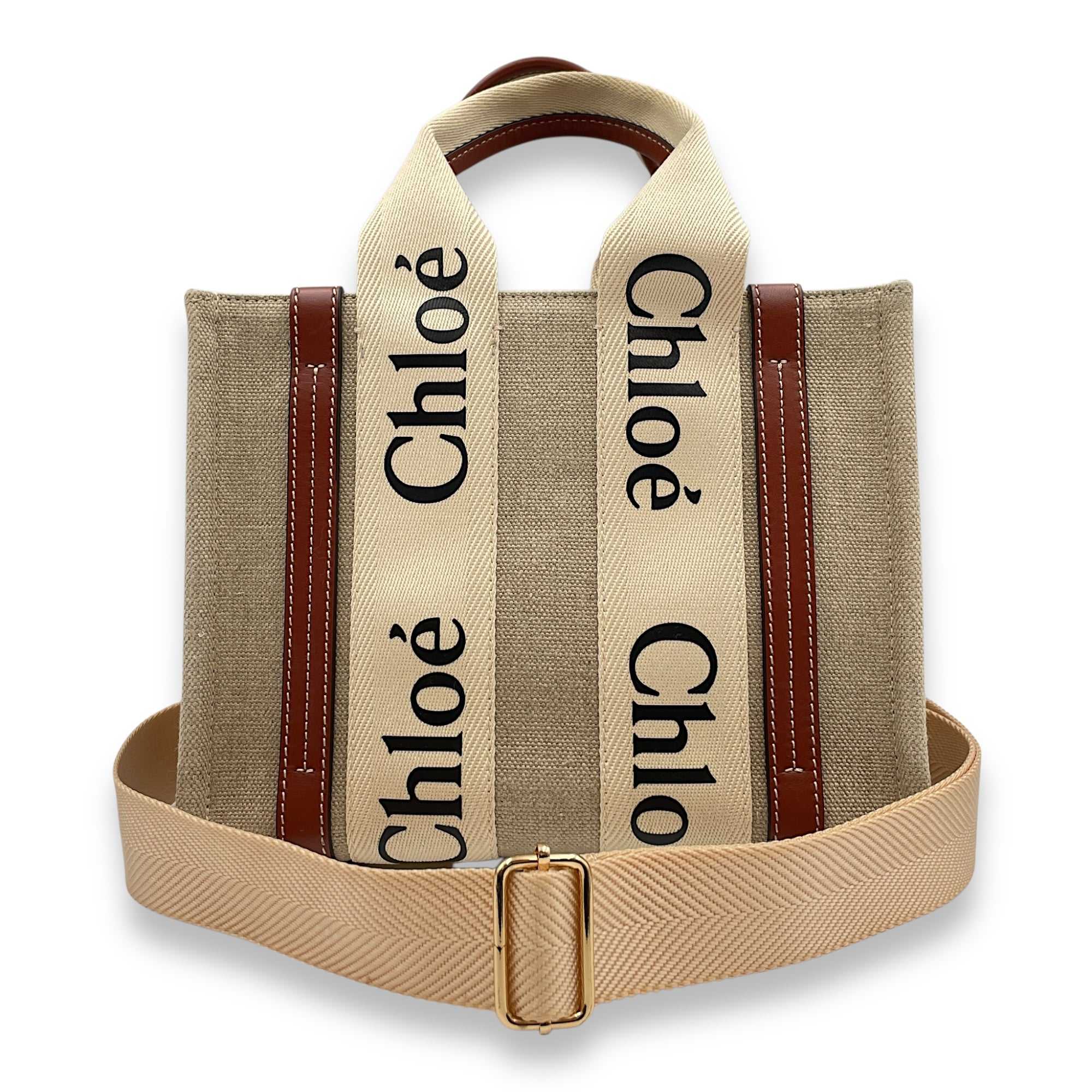 Be the first to review “Woody Small Beige Tote Bag in Canvas, Gold hardware”