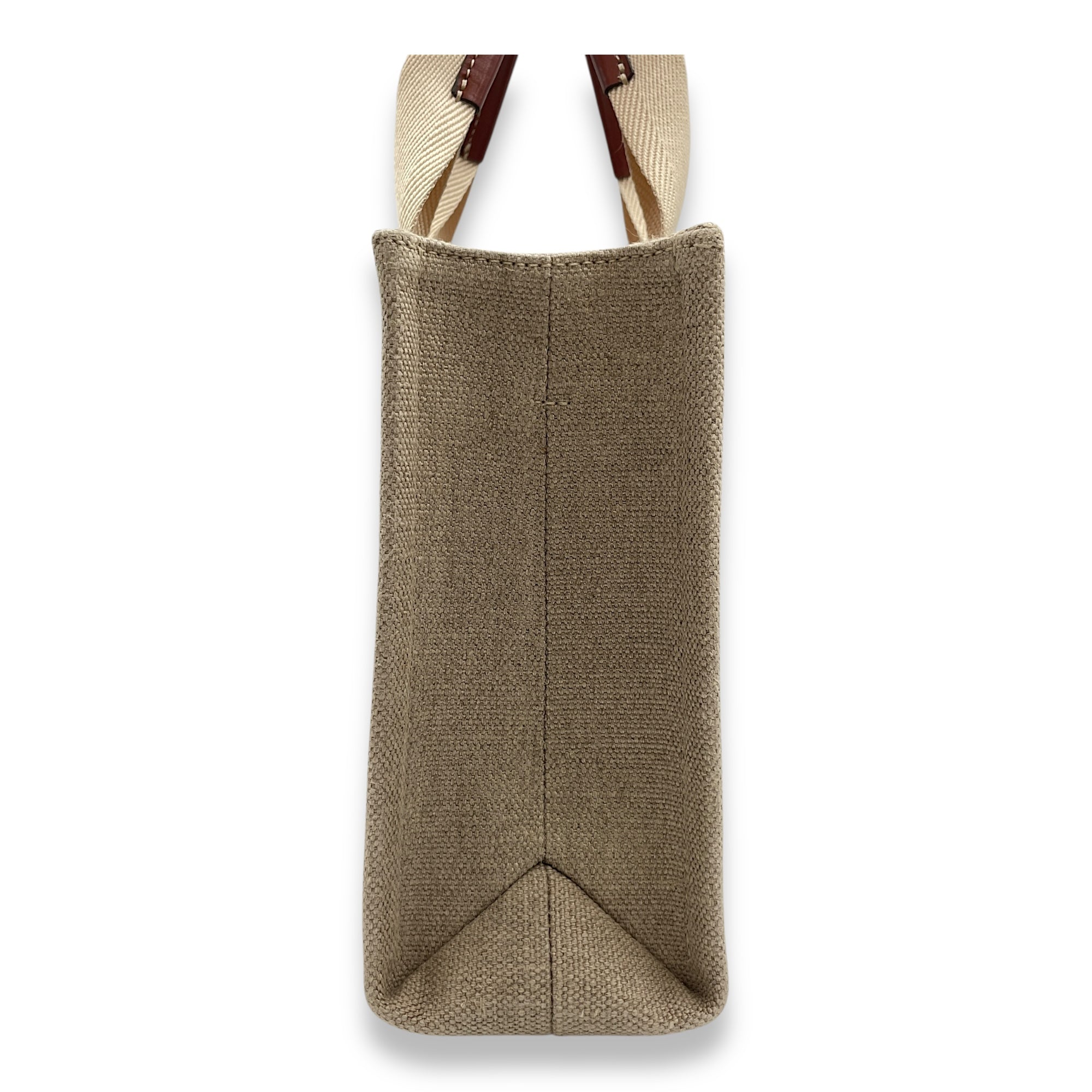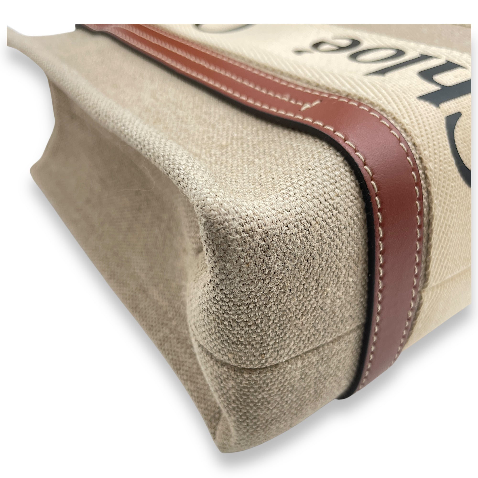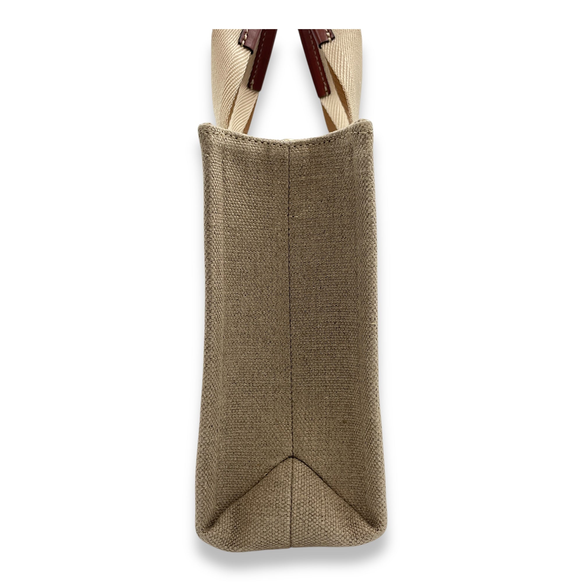 Woody Small Beige Tote Bag in Canvas, Gold hardware