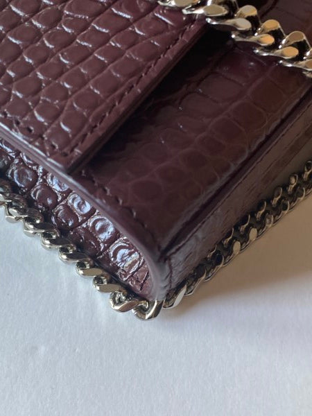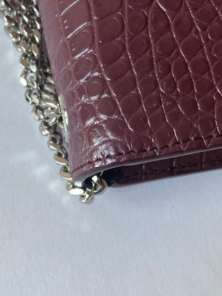 YSL Burgundy Croco Embossed Kate Tassel Small Bag