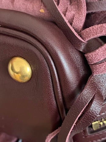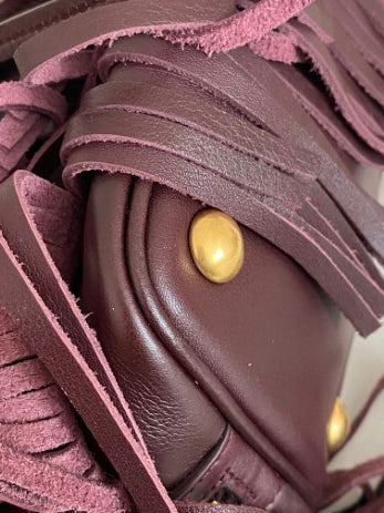 • Material: Burgundy Calfskin Leather with Fringe Details