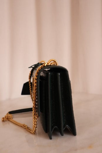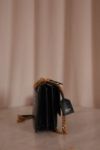 YSL Green Embossed Croco Sunset Medium Bag