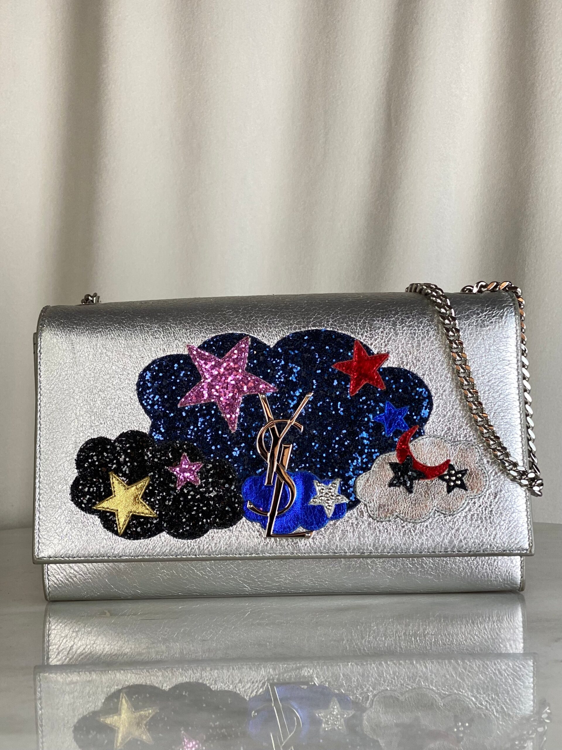 YSL Metallic Silver Yves Medium Cloud & Strar Kate Bag